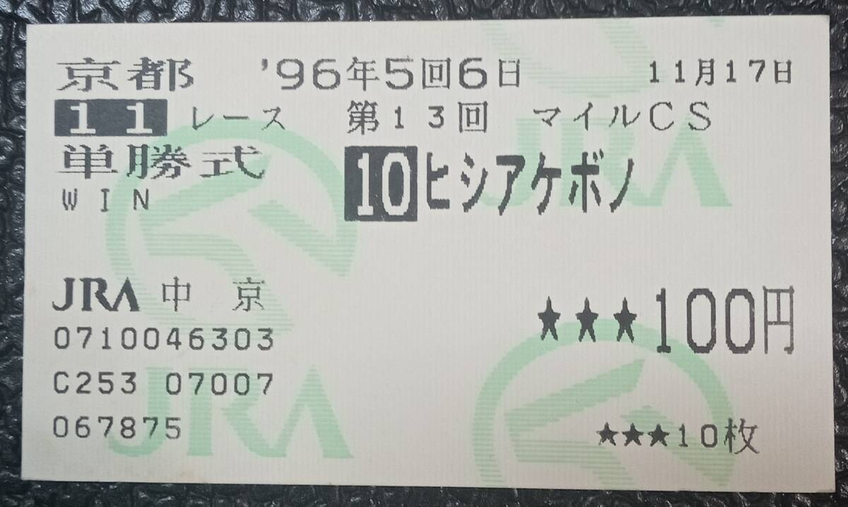 馬券 【ヒシアケボノ】96年マイルCS 20年以上前のものになりますが状態は悪くはないです。