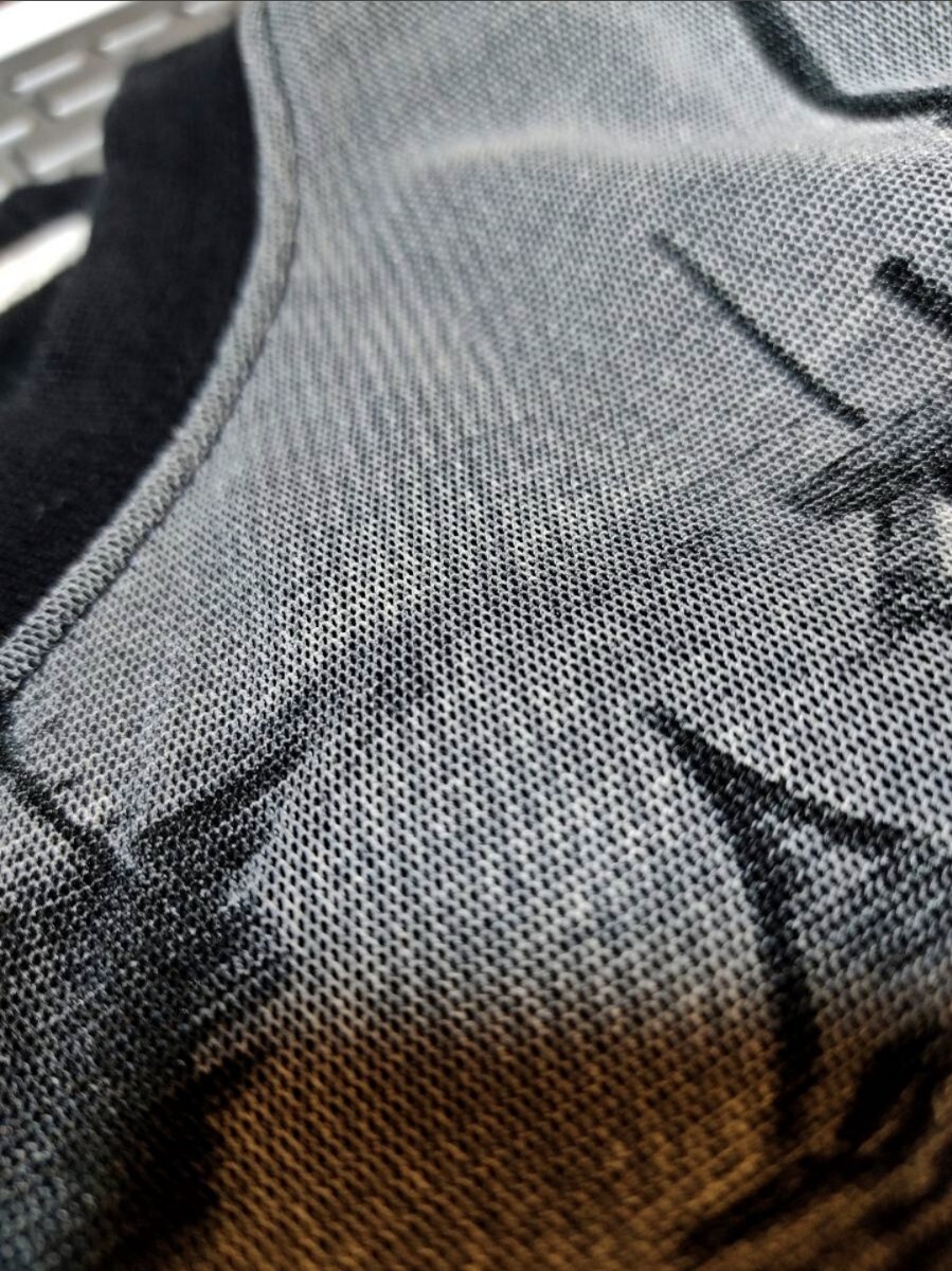 フロントの絵画の部分はコットン生地とメッシュ生地の二枚生地仕立てになっており非常に手の込んだ作りです。
