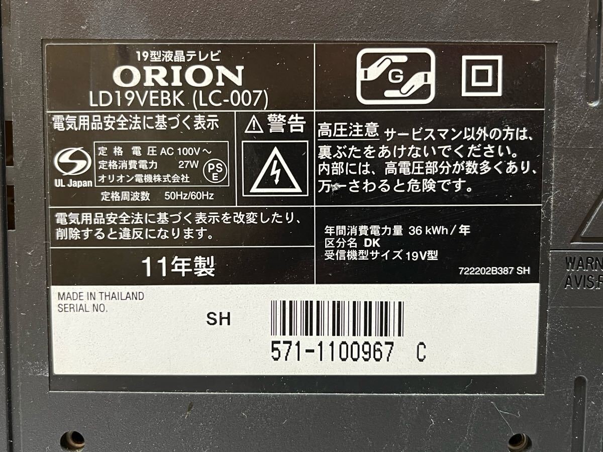 RE4389 ORION オリオン LD19VEBK(LC-007) 液晶テレビB-CASカード付 液晶テレビ リモコン欠品 通電確認済み 現状品 0508