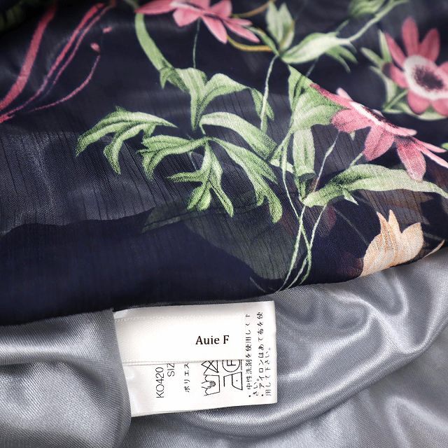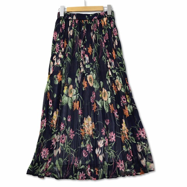 Auie ゴムウエスト フラワープリント ギャザー プリーツ スカート 38 ネイビー レディース