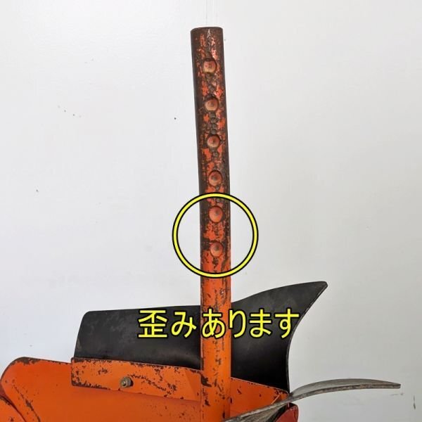 ロータリー等作業機への装着可否に関しましては、 ご質問をいただきましても当方では判断致しかねますので、 型式実寸法等をご参考に、メーカー等へ直接ご自身で お問い合わせご確認のうえ、最終的なご判断をお願い致します 農機具特有の使用に伴う傷汚れ、錆等の使用感が見られます。 |