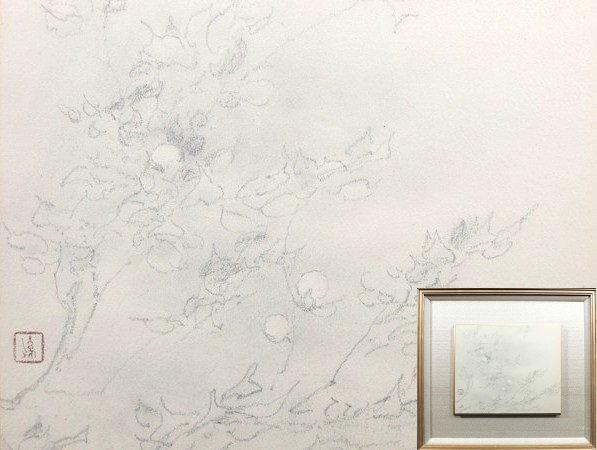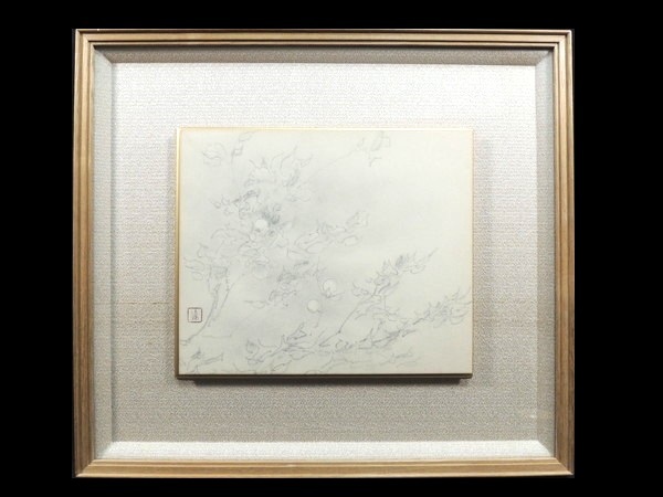 真作/榊原紫峰/「青梅」/日本画/3号/額装品/共シール付/花鳥画/作家物/美術品/師:竹内栖鳳