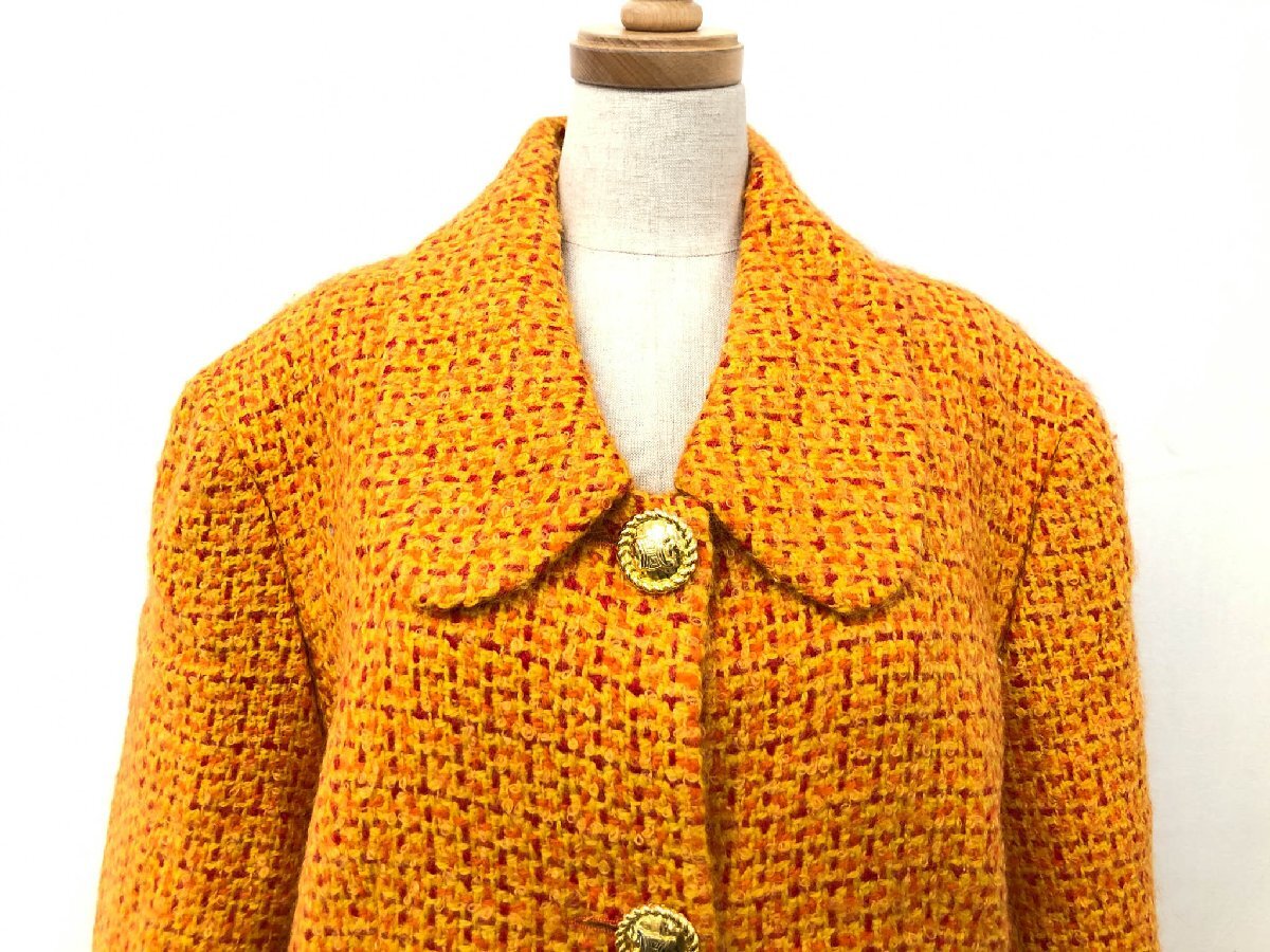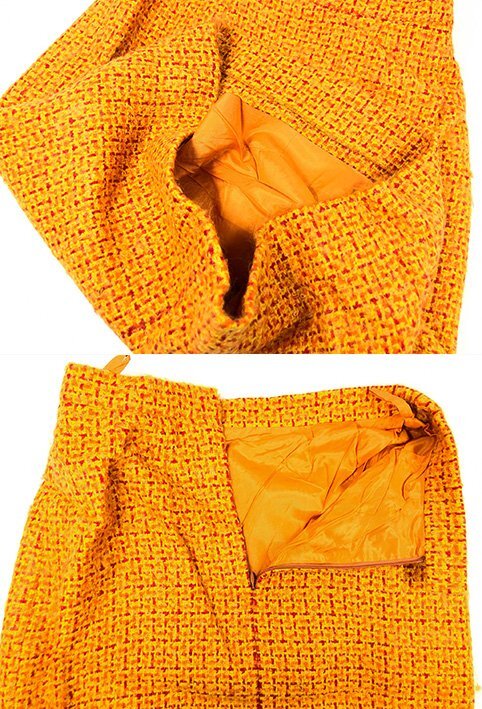 ・レッドやイエロー系の色糸が織り混ざった肉厚のツイード生地です。