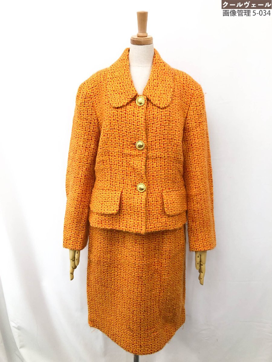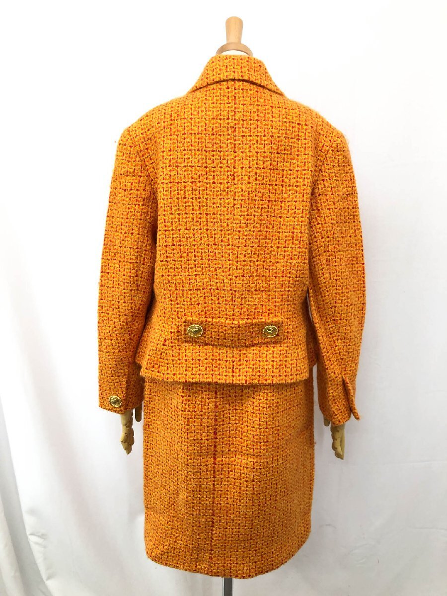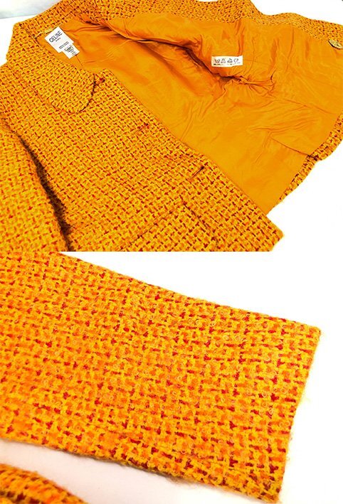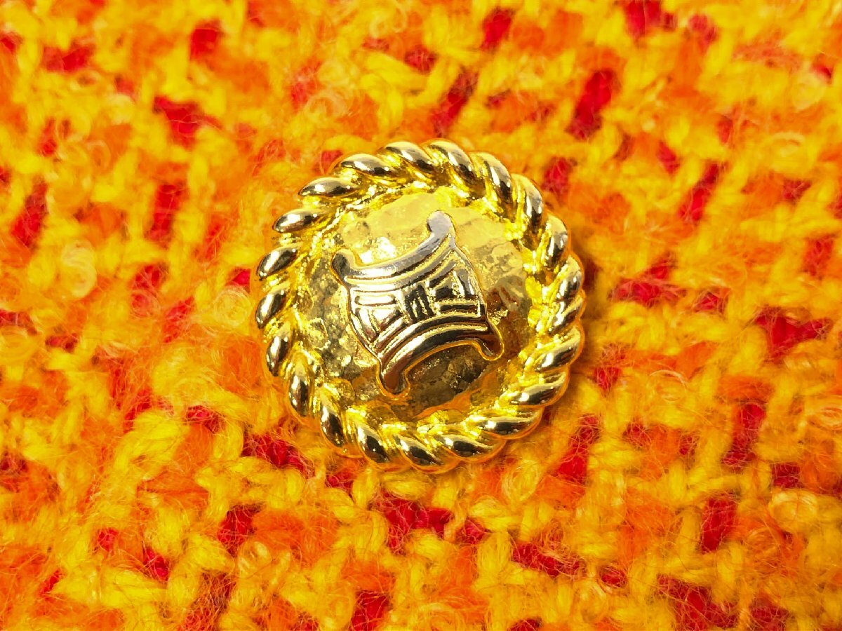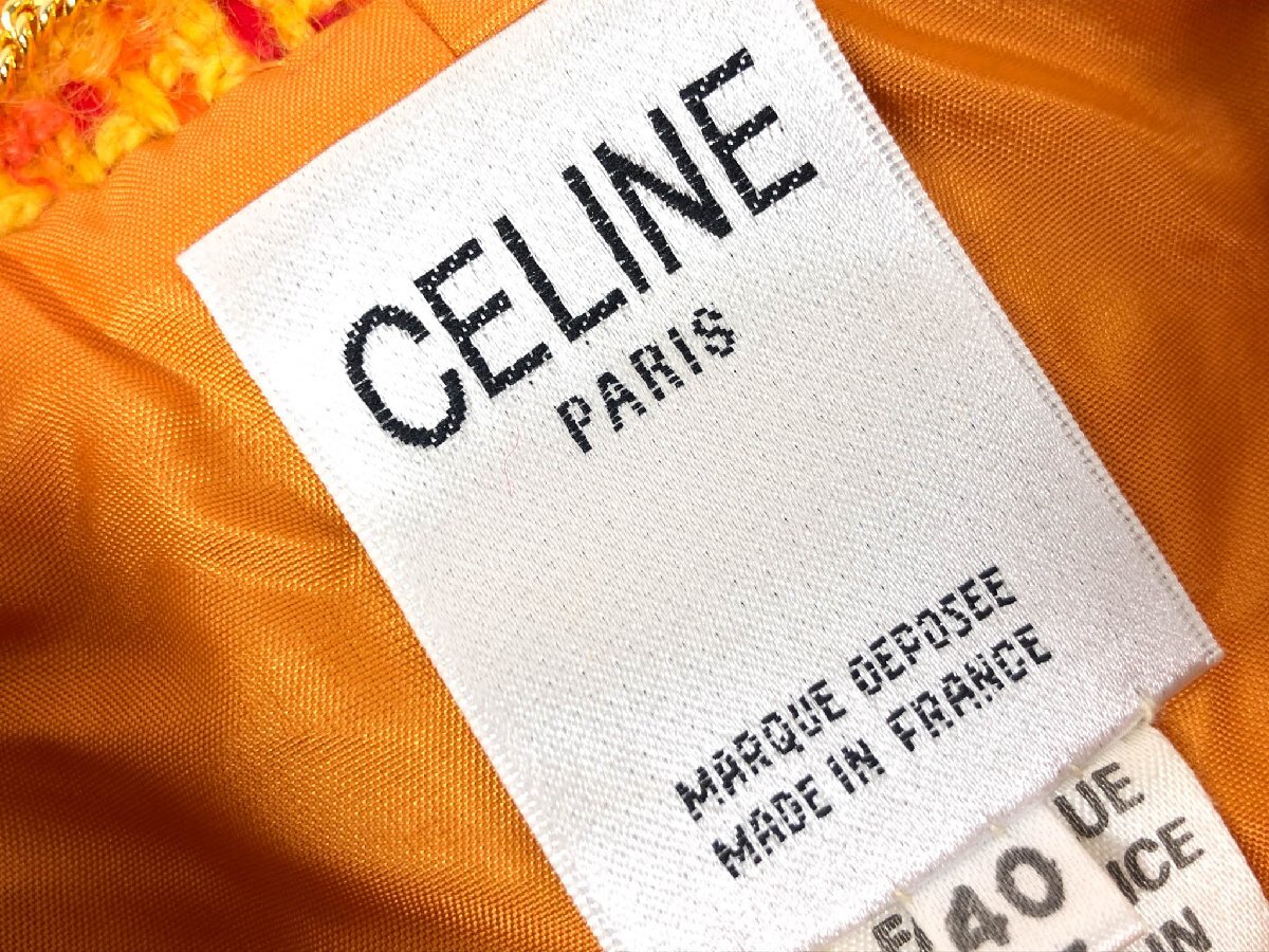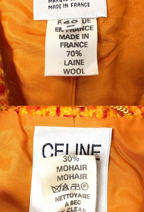 ヴィンテージ 美品【セリーヌ】モヘア×毛 金ボタン ツイードジャケット×スカート セットアップスーツ(レディース)40 仏製◯17LS1113◯