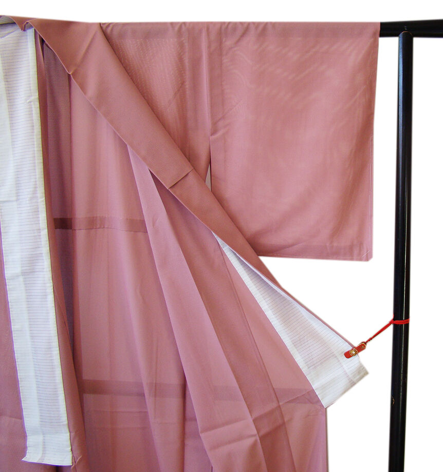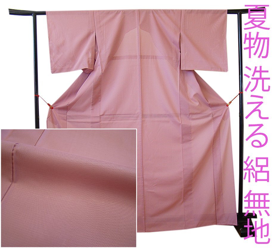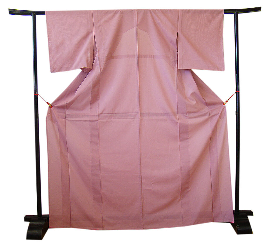 商品説明 | こちらのお品は夏物でございますので、7月~8月にお召頂ければと思います。 「絽」と言えば、紗と双璧を成す夏のお着物の生地で、 その最大の魅力は絶妙の透かし加減でございます。 清涼感溢れる地の風を通すしなやかさは夏に着物を着るという贅沢を 快適に愉しませてくれる事でしょう。 着物には、大きく分けて「袷(あわせ)の着物」と「単衣(ひとえ)の着物」と「夏着物」があります。 反物(表地)を着物に仕立てるときに、裏地類をつけるものを袷の着物、 つけないものを単衣の着物と呼び、胴裏や八掛といった裏地がつかない一枚ものの着物です。 また裏地がないため、座る時などにヒップのラインが目立たないよう、 居敷当て(いしきあて)の生地をつけることもあります。 居敷当ては付いておりません。 しなやかな手触りの滑らかなさらっとした肌触りは絹と間違ってしまいそうな 洗える高級ポリエステルの「絽」の生地で涼やかな風合いを醸しております。 上品な退紅色地の無地着尺、紋は入っておりません。 |