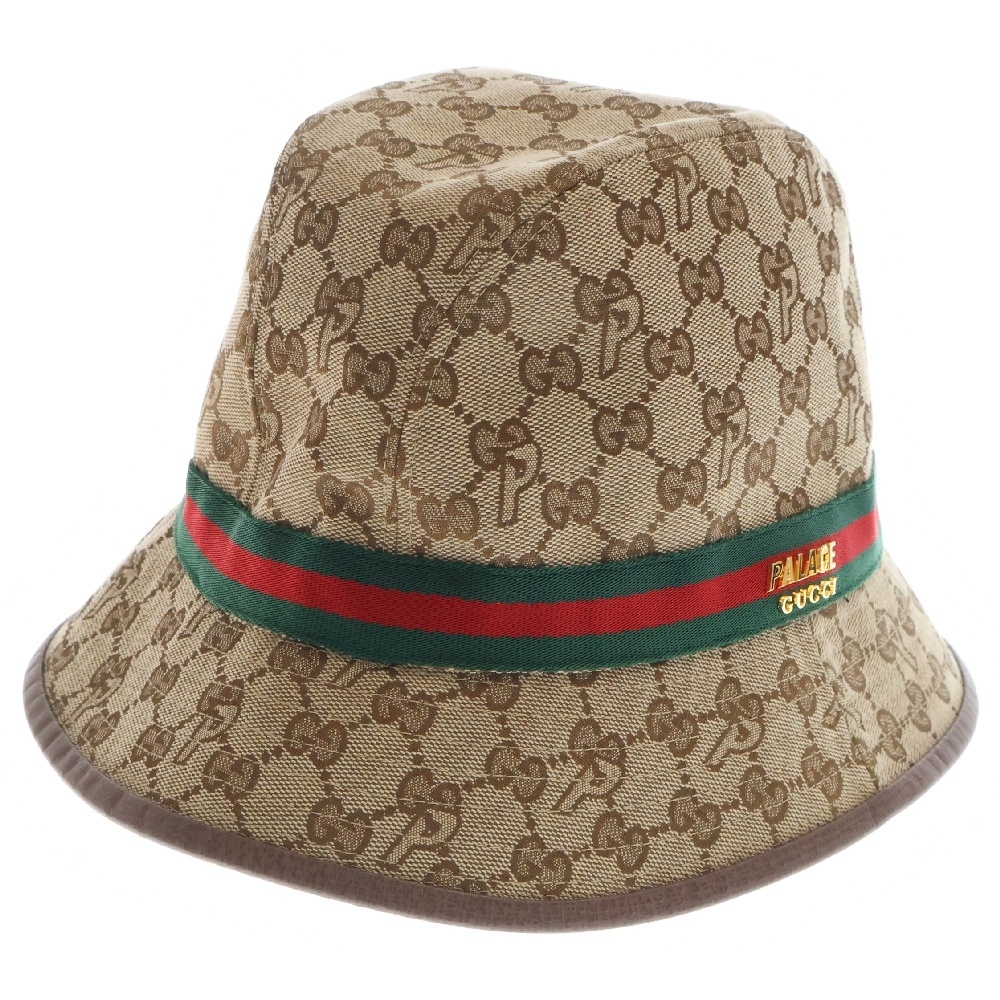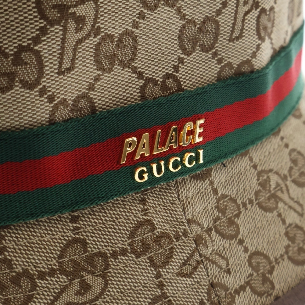 GUCCI グッチ ×PALACE パレス GGキャンバス 総柄 シェリーライン バケットハット 帽子 ブラウン 726133