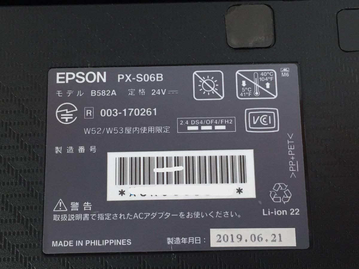EPSON◆A4インクジェットプリンター/モバイルプリンター PX-S06B Wi-Fi 使用約889枚 /バッテリーD231A external batteryメーカー:EPSON品番:PX-S06B年式:2019年製