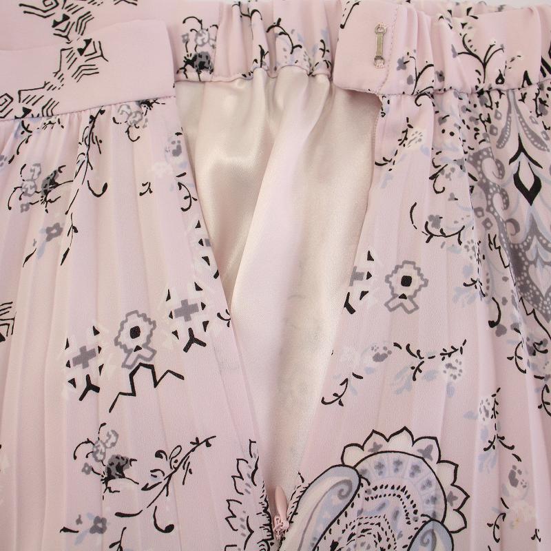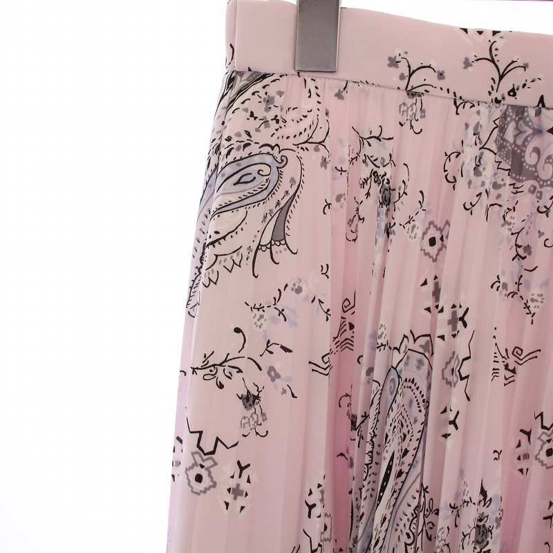 グレースコンチネンタル フレアスカート プリーツ イージー ミモレ ロング ウエストゴム レース 切替 ペイズリー柄 総柄 36 ピンク