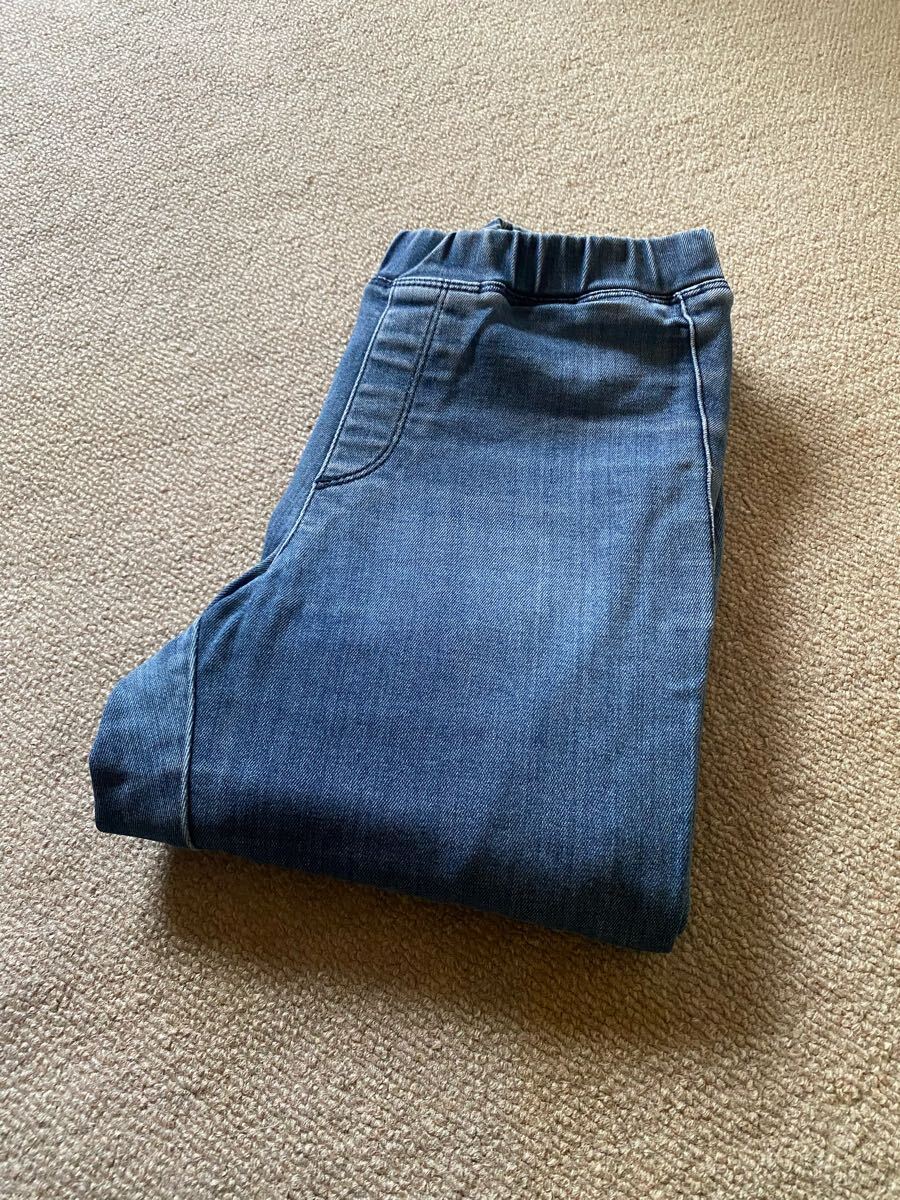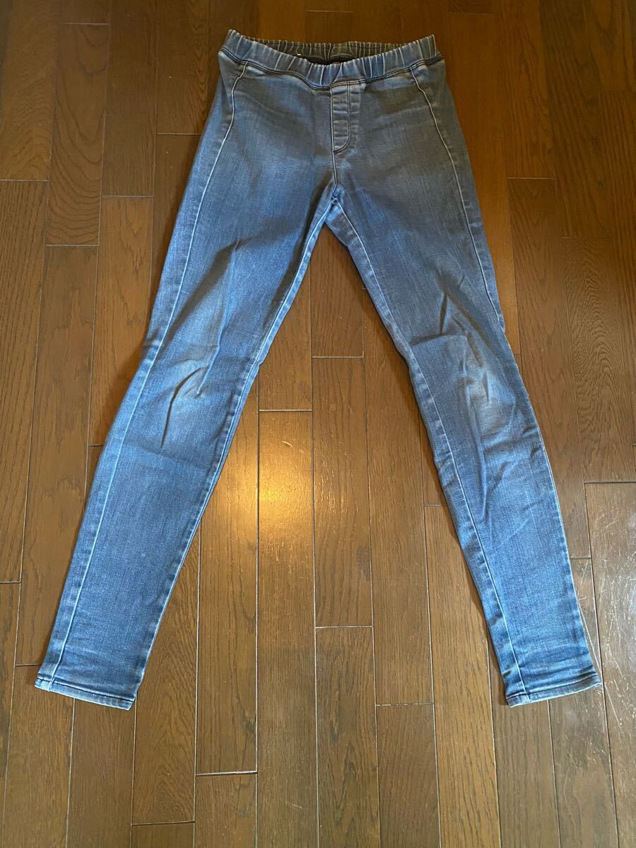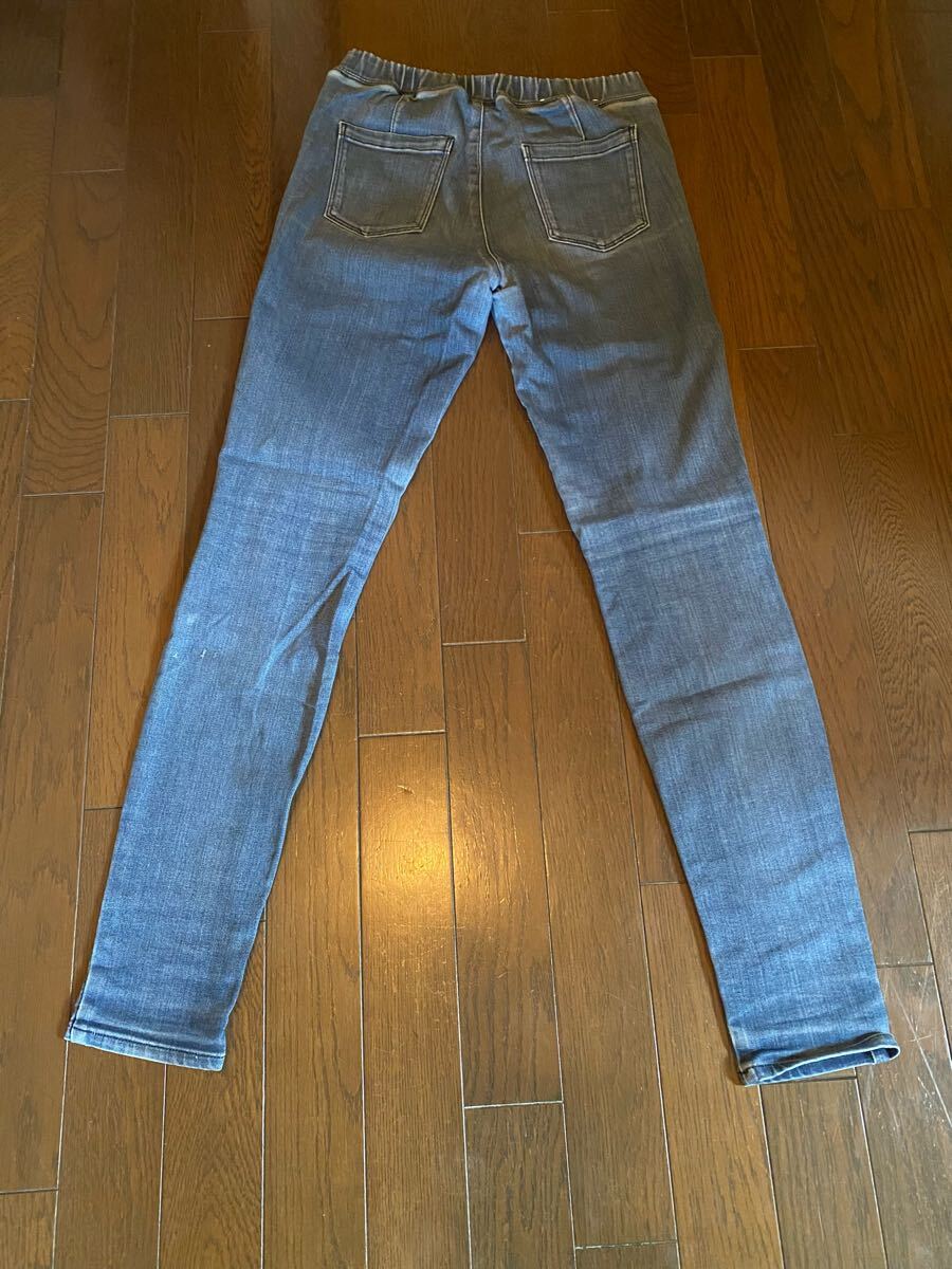 ☆UNIQLO デニムスキニースリムタイトフィットジーンズ風な #ストレッチ なジャージ、スウェット感覚ではける便利で楽なパンツボトムスです。タイトシルエットですが、伸びますので窮屈さは感じません。
