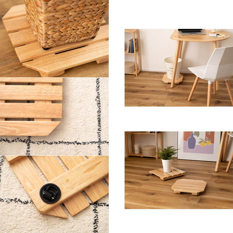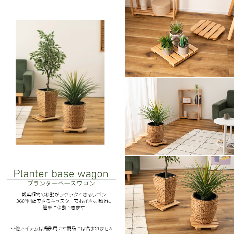 お部屋に癒しのグリーンを。インテリアグリーンの移動がラクラク。お掃除や模様替えなどで移動がスムーズにできるキャスター付きのプランターベース。隠しキャスターでスッキリシンプル、360度回転できるので移動したい方向に動かすことができます。