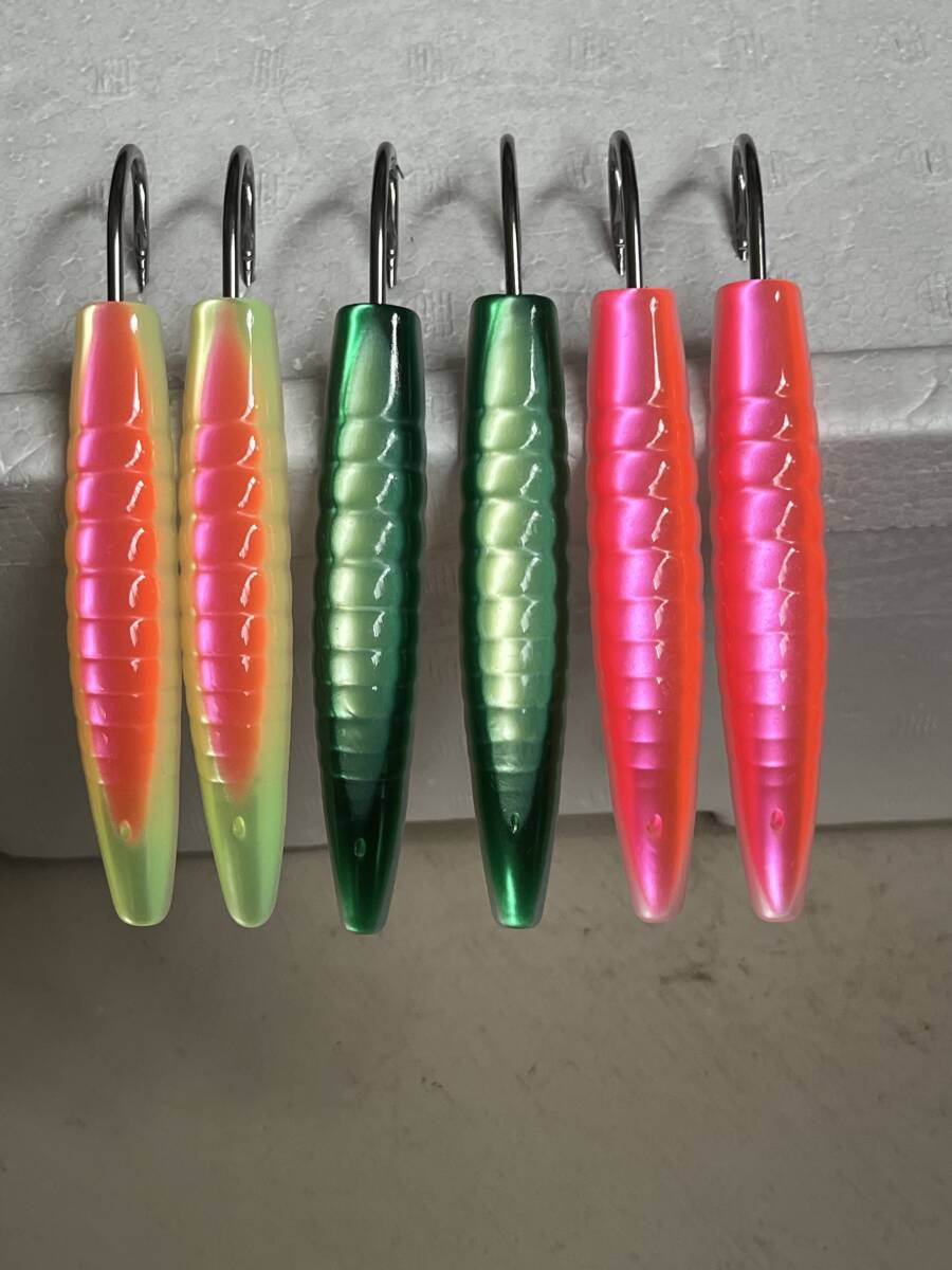 サワラ、ハマチなどのトローリング用 弓角ジャバラステンレスピンク9.5cm2本、薄緑緑9.5cm2本ピンク黄2本発送はお手軽ゆうパケットミニポスト投函になります。木曜日以外の発送になります。