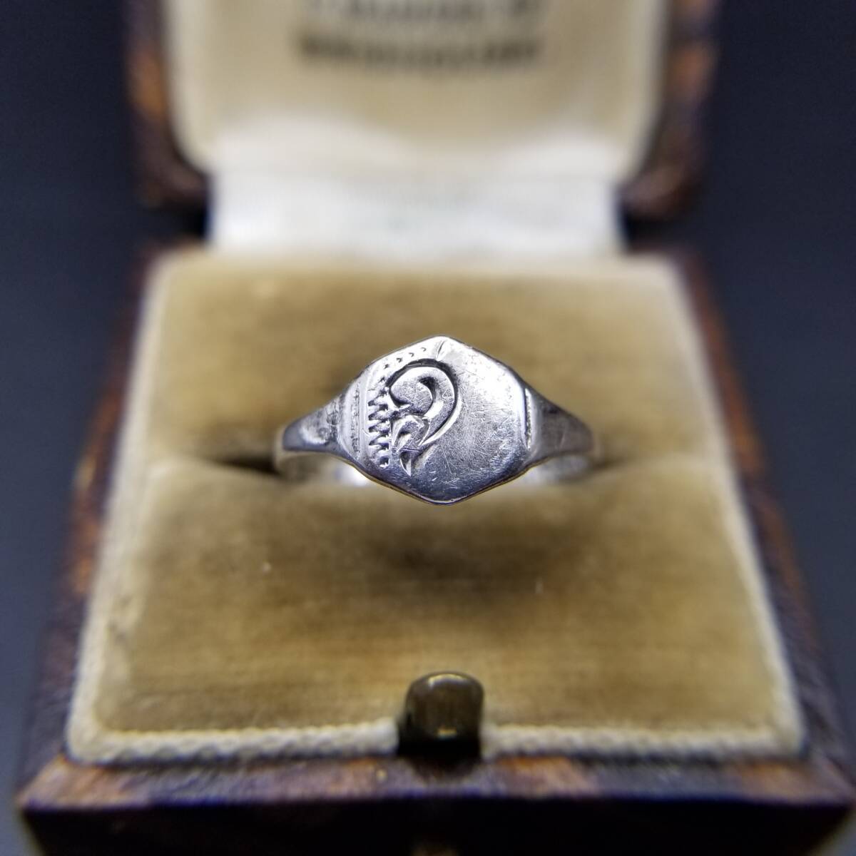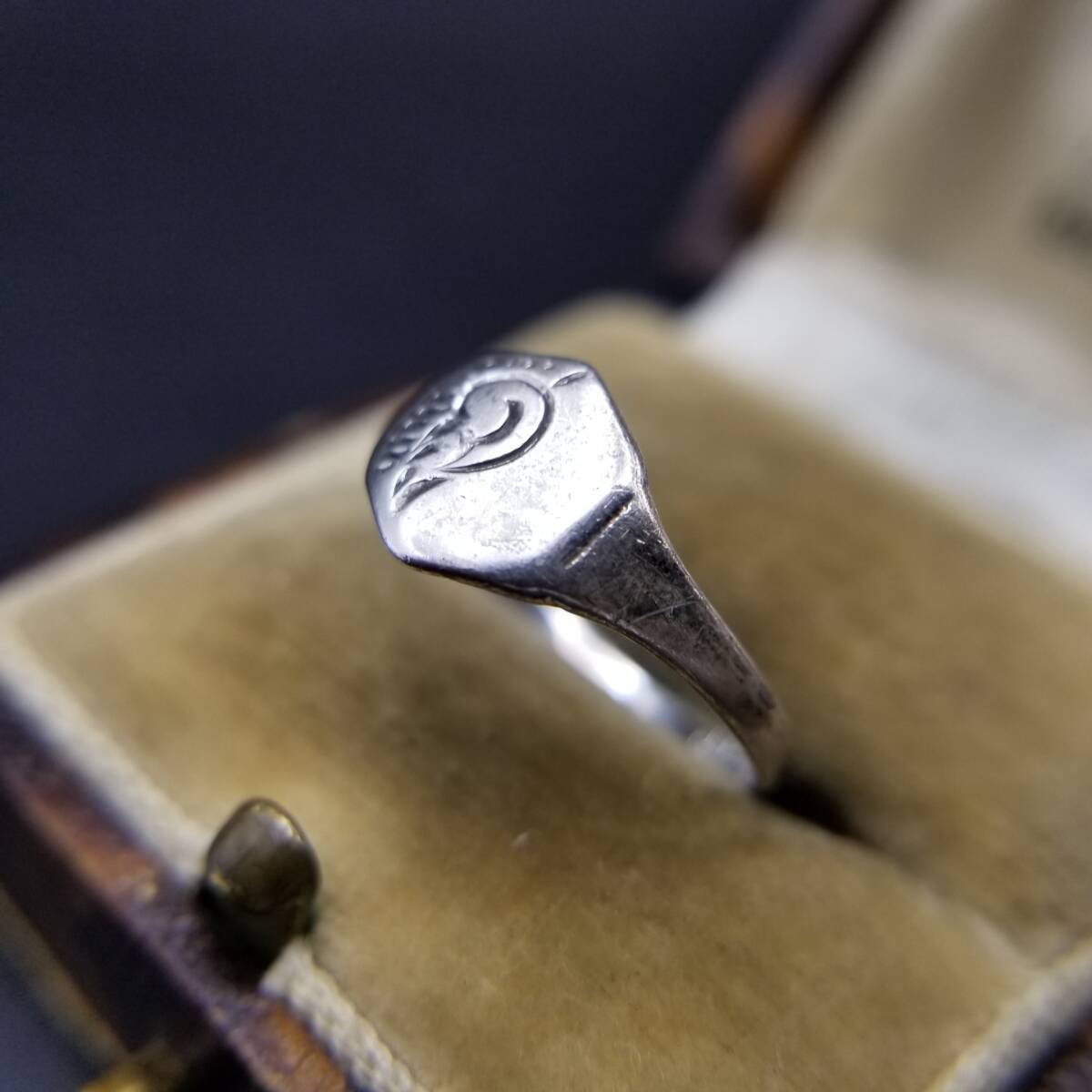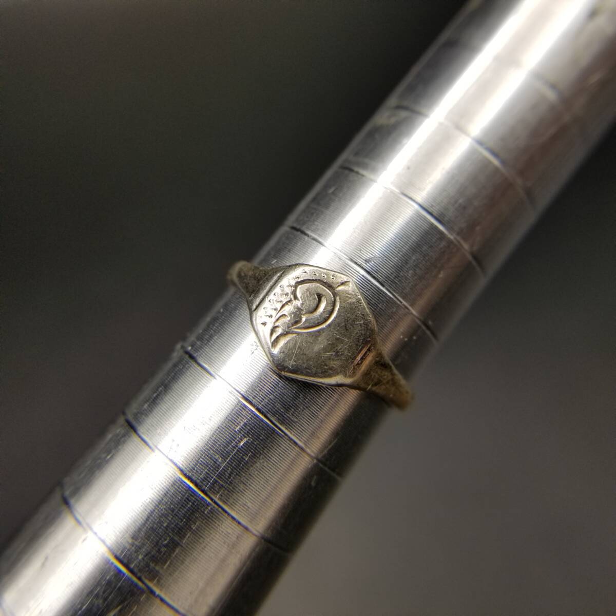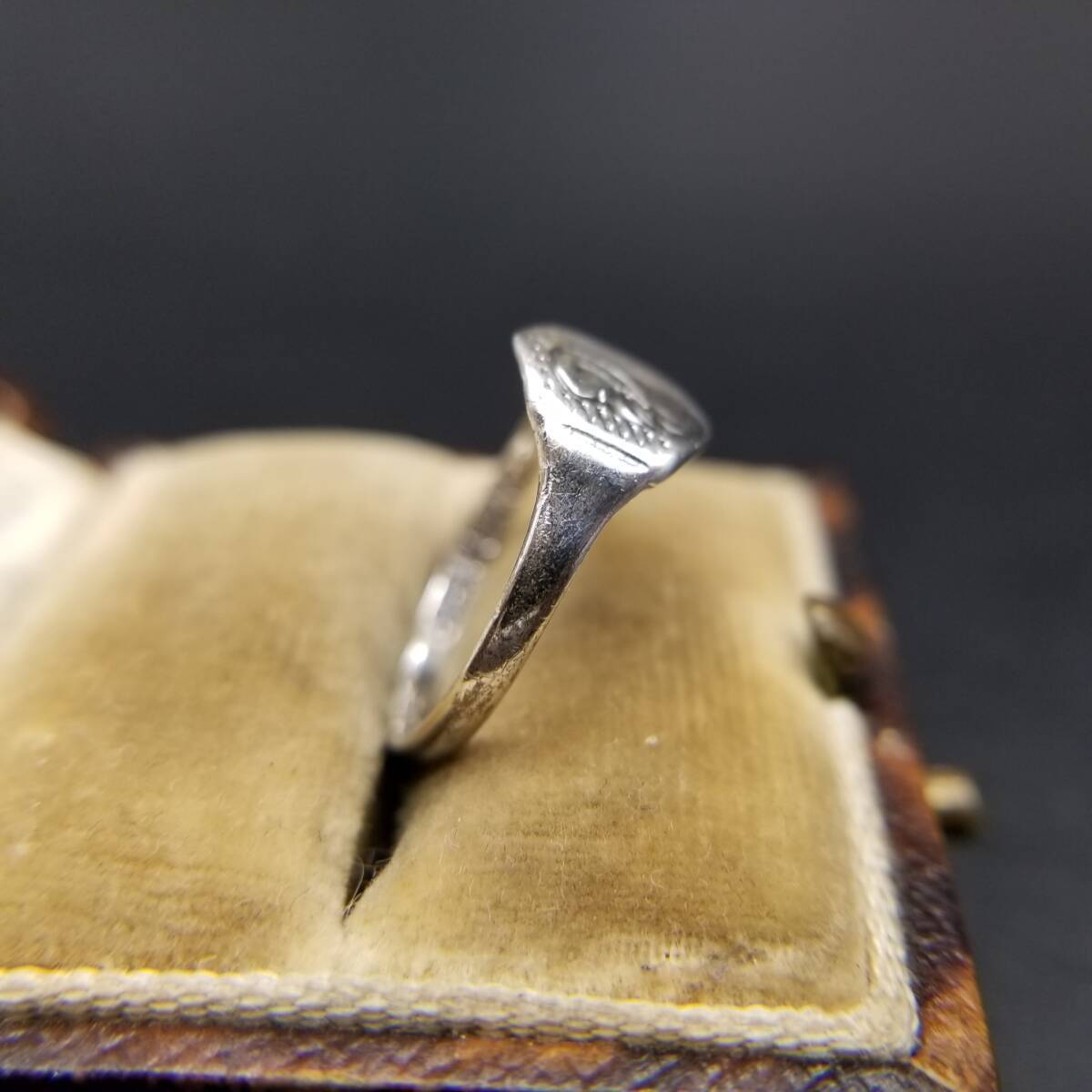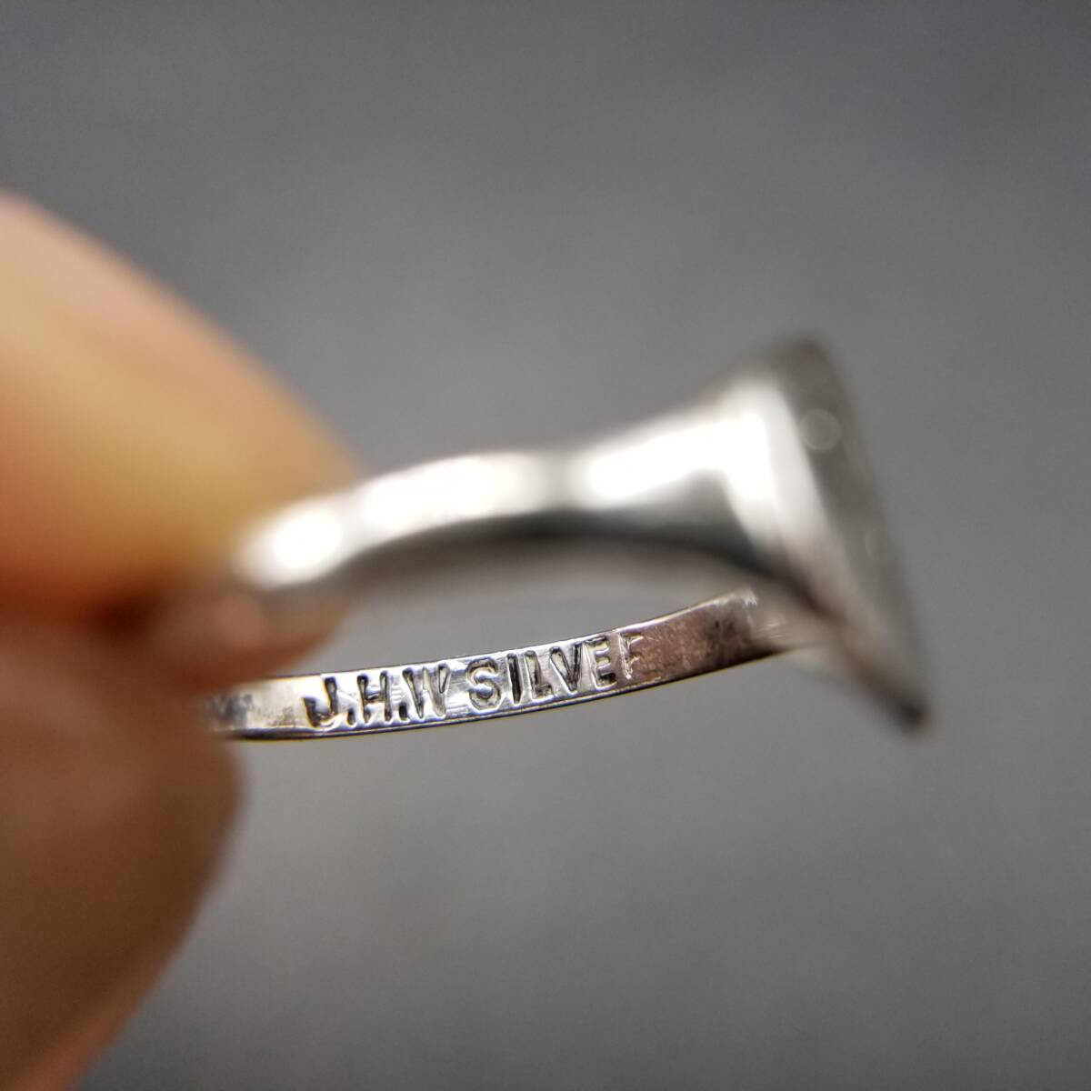 JHW社製 英国 ヴィンテージ ひし形 シグネット リング 指輪 925シルバー 銀 翼 エッチング レトロ クラシック 華奢 重ね付け Y22-V