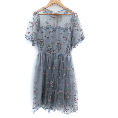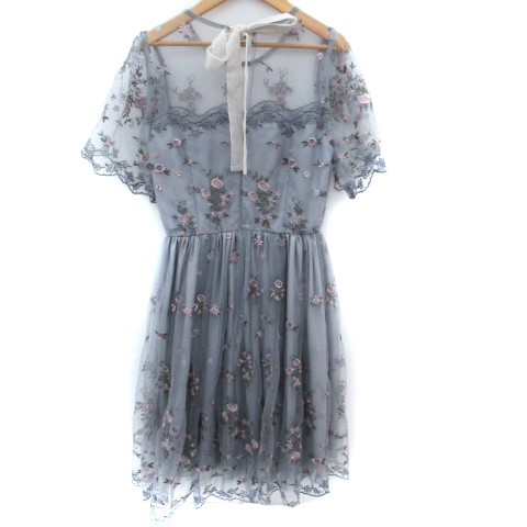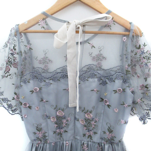 リリーブラウン Lily Brown ワンピース ミモレ丈 レース 透け感 刺繍 チュール リボン 0 小さいサイズ マルチカラー ダスティブルー