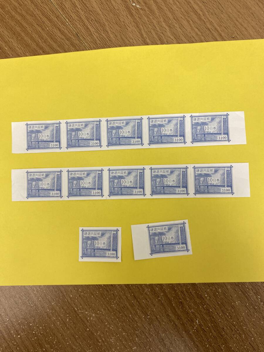 建退共証紙 青 3100円 10日券 バラ12枚 (120日分) 領収証可 e18 | |