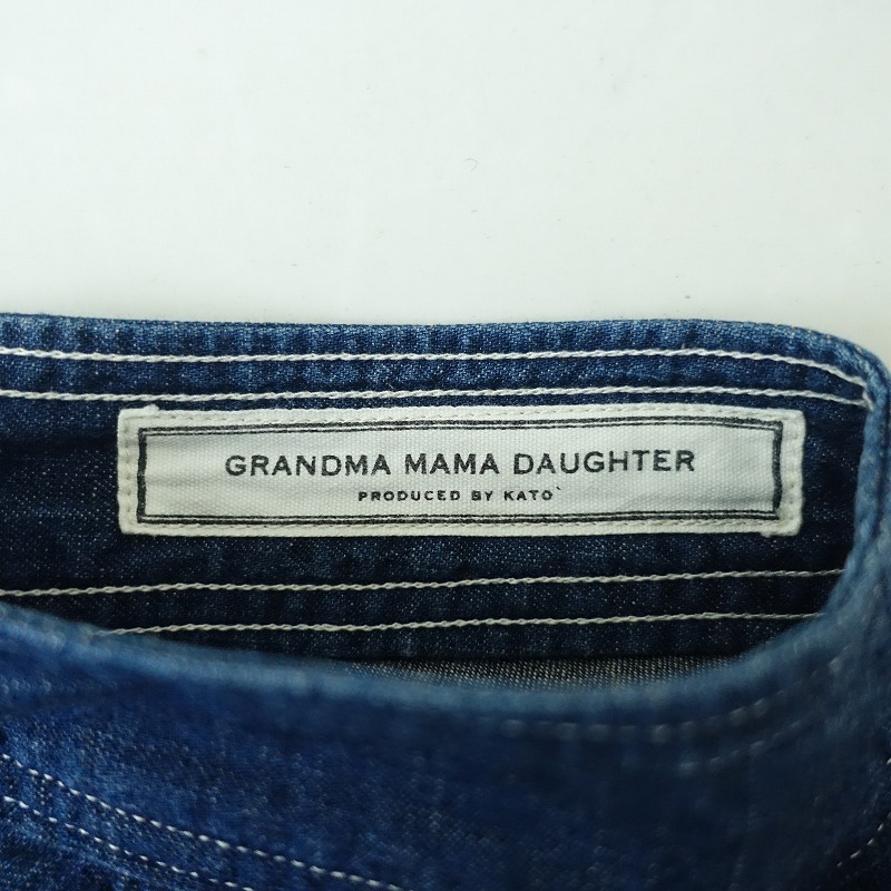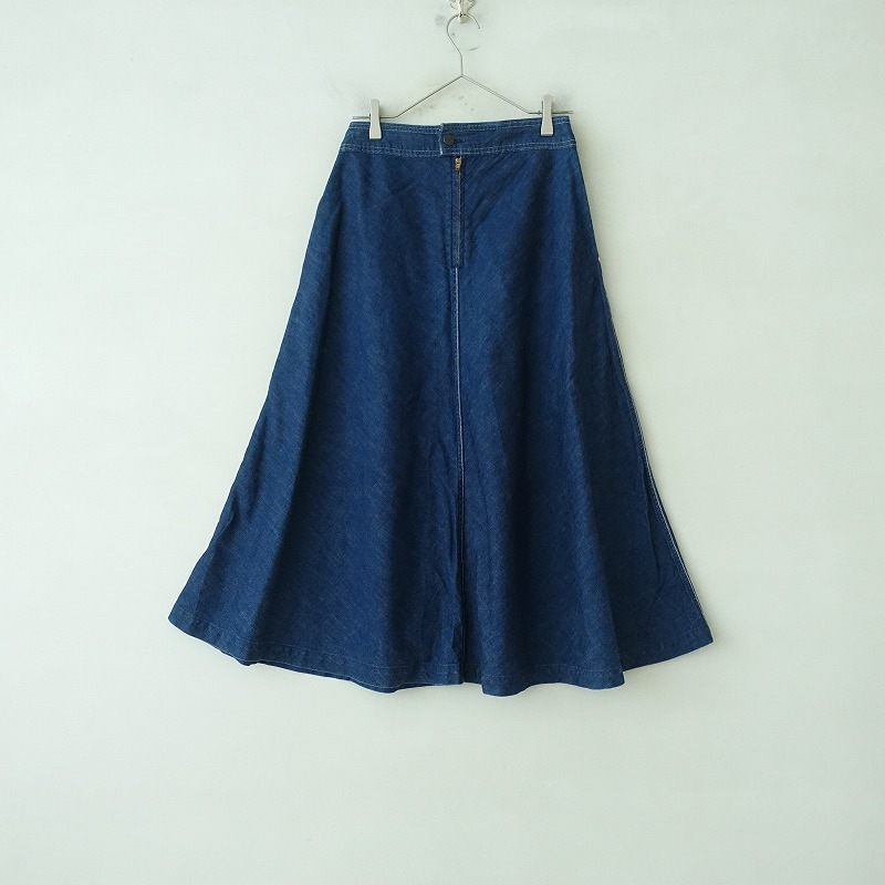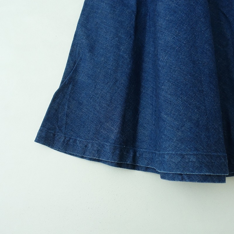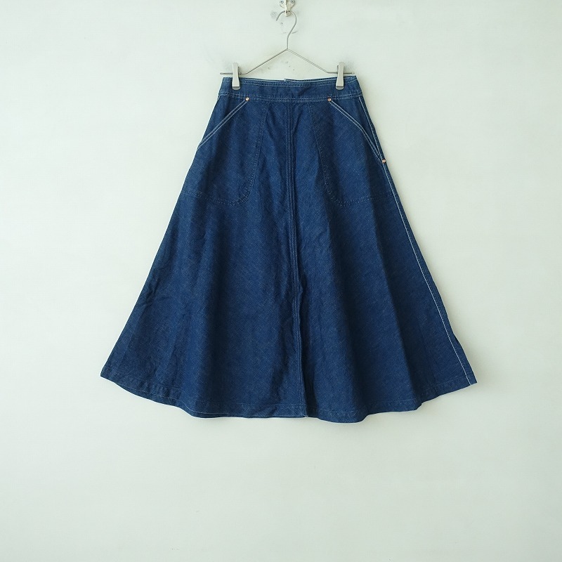 | GRANDMA MAMA DAUGHTERのコットンデニムロングフレアスカートです。カラーはインディゴブルーで、コットンのデニム地で仕立てられています。後ろボタン&ジッパーで着脱でき、両サイドにポケット付きです。 |