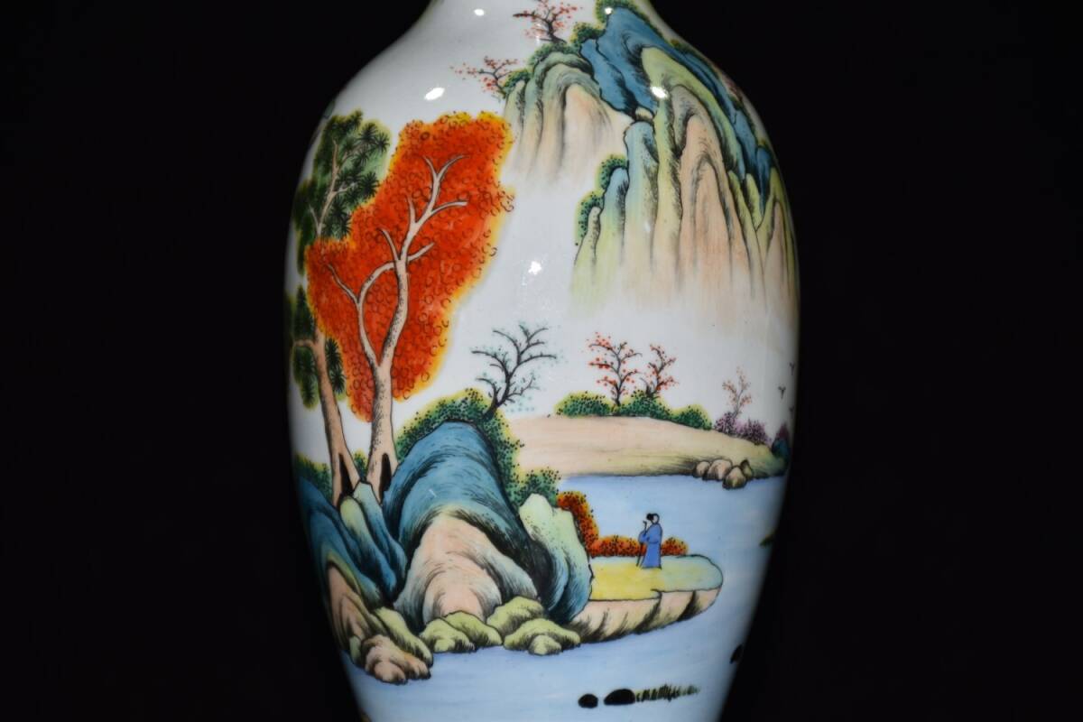 【超珍館蔵】紫銅製 景泰藍 琺瑯彩 山水紋 花瓶 置物 賞物 古賞物 古董品 古美術品 時代物 旧家蔵出 稀少珍蔵品