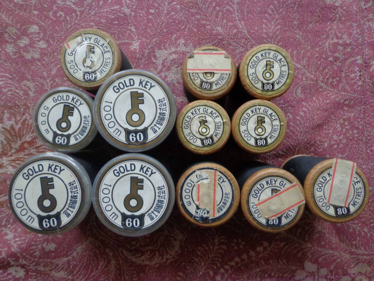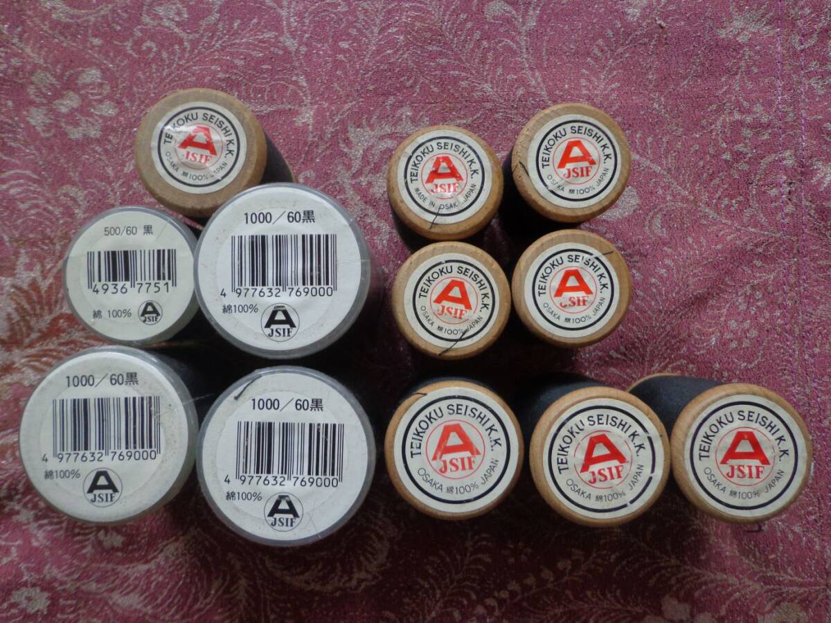 未使用/長期保管品★黒 綿100% カタン糸 ミシン糸 GOLD KEY★60番/5個 計4000m★80番/7個 計5000m★まとめ12個セット 大量