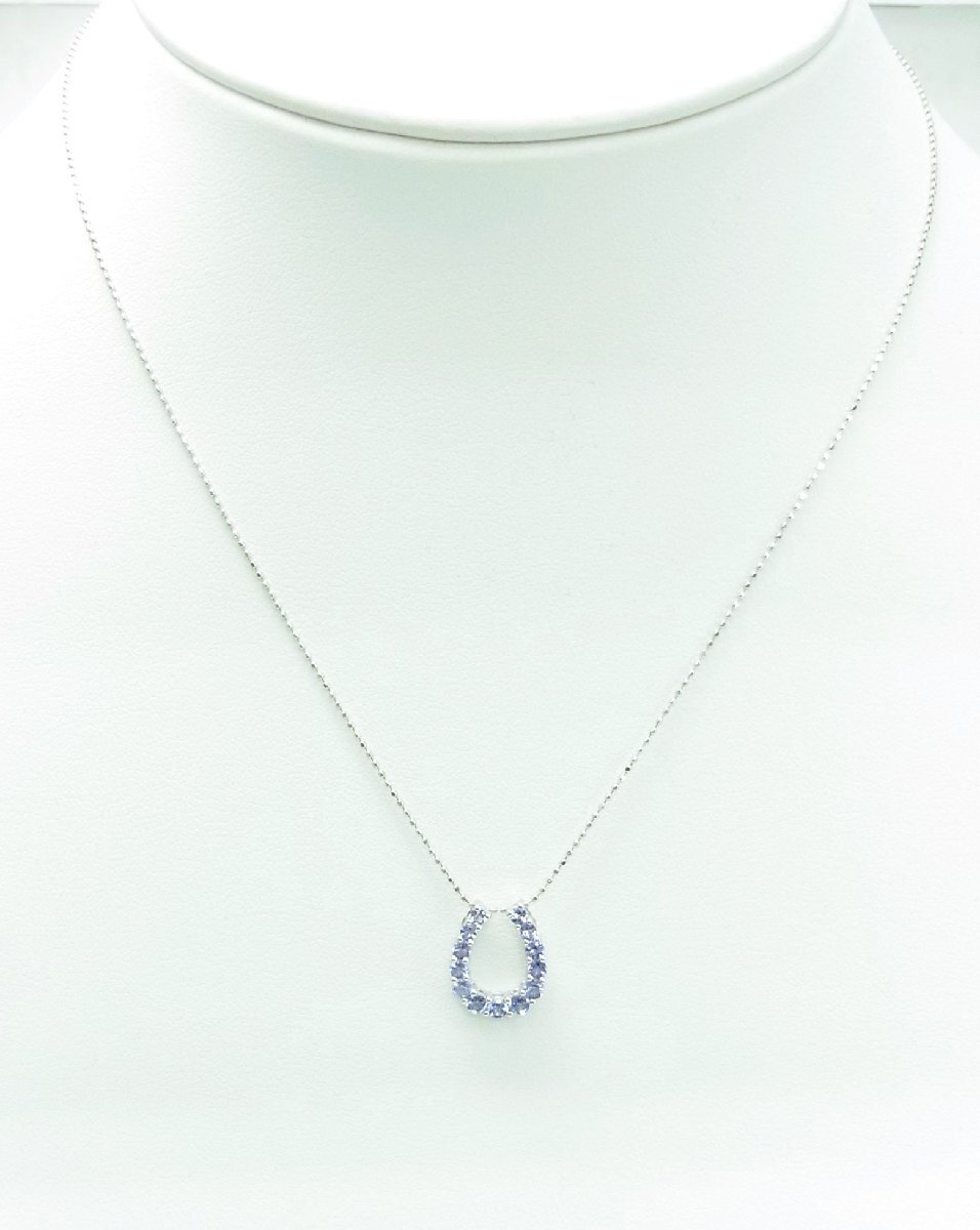 天然タンザナイト ホースシュー型 18金ホワイト製ペンダントネックレス 卸価格でご奉仕 商品動画有 送料込み