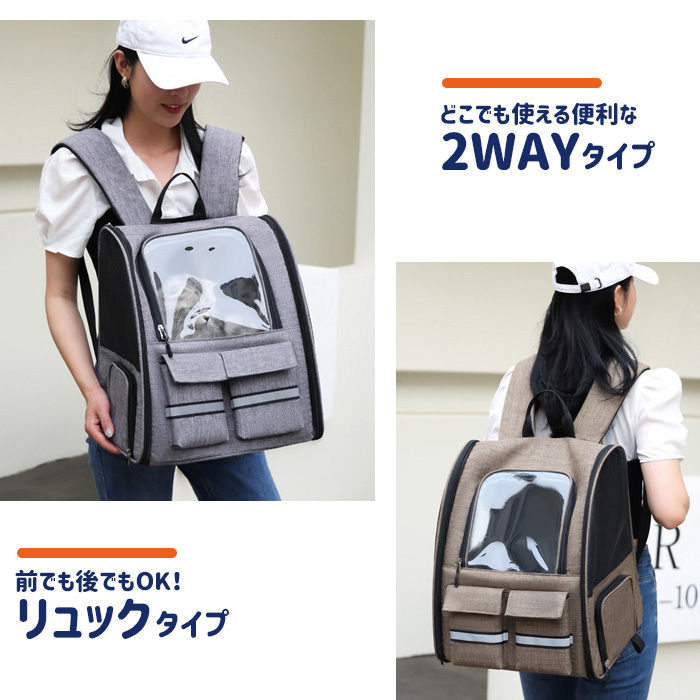 ■リュックとしてもキャリーとしても使用できる2way仕様で、移動中でもペットの安全と快適さを確保します。