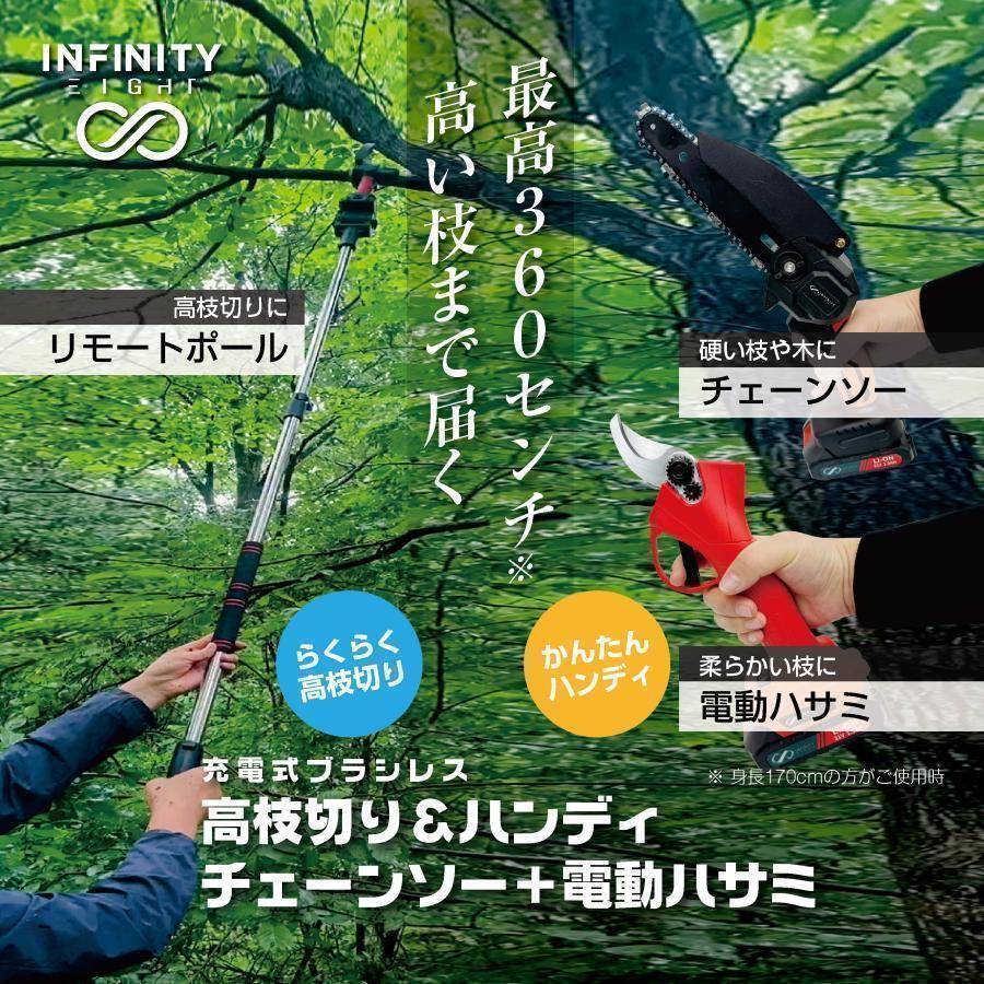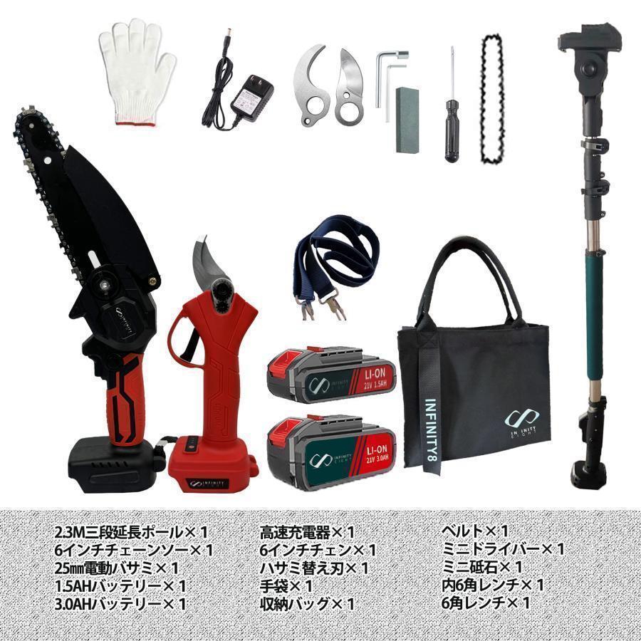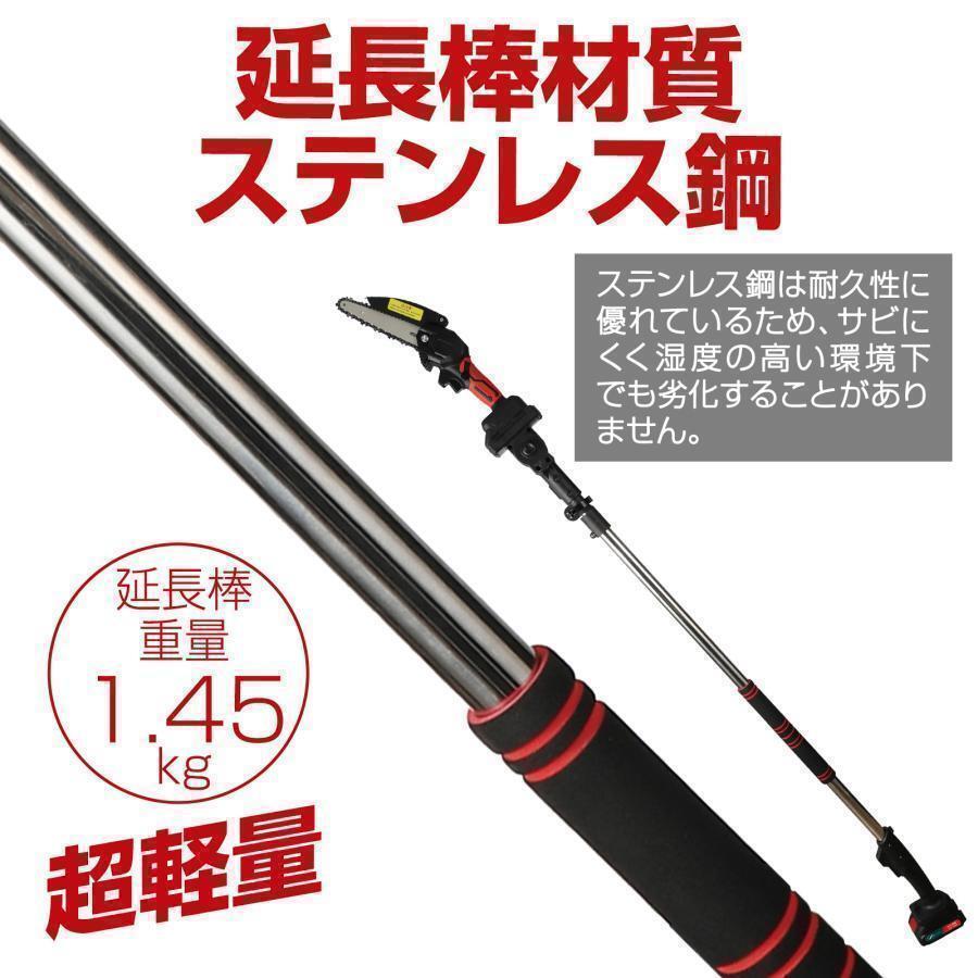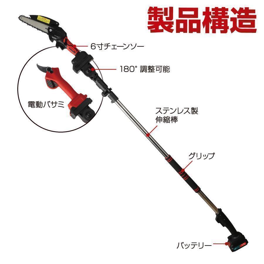 電動高枝チェーンソー 高枝電動こぎり 充電式剪定ばさみ 延長棒 農園セット バッテリー2個 充電器 最短1m最長2.3m 収納に便利【PSE認証済】