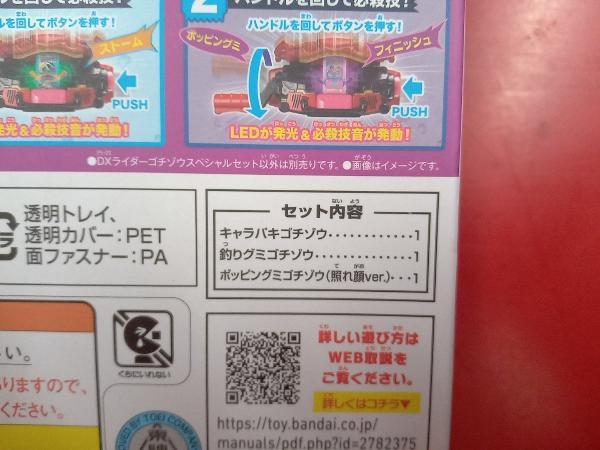 【セット内容】ポッピングミゴチゾウ(照れ顔ver.)、キャラパキゴチゾウ(スペシャルセットver.)、釣りグミゴチゾウ【作品名】[36]仮面ライダーガヴ |