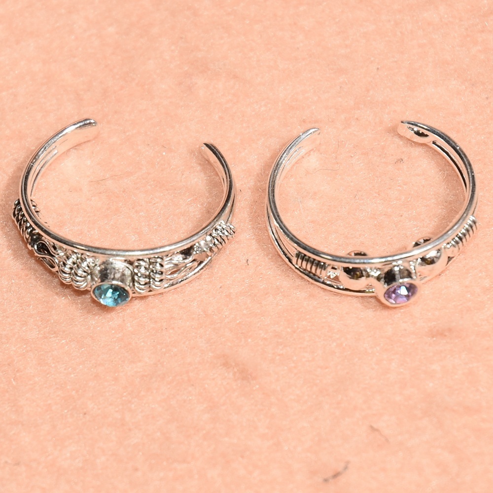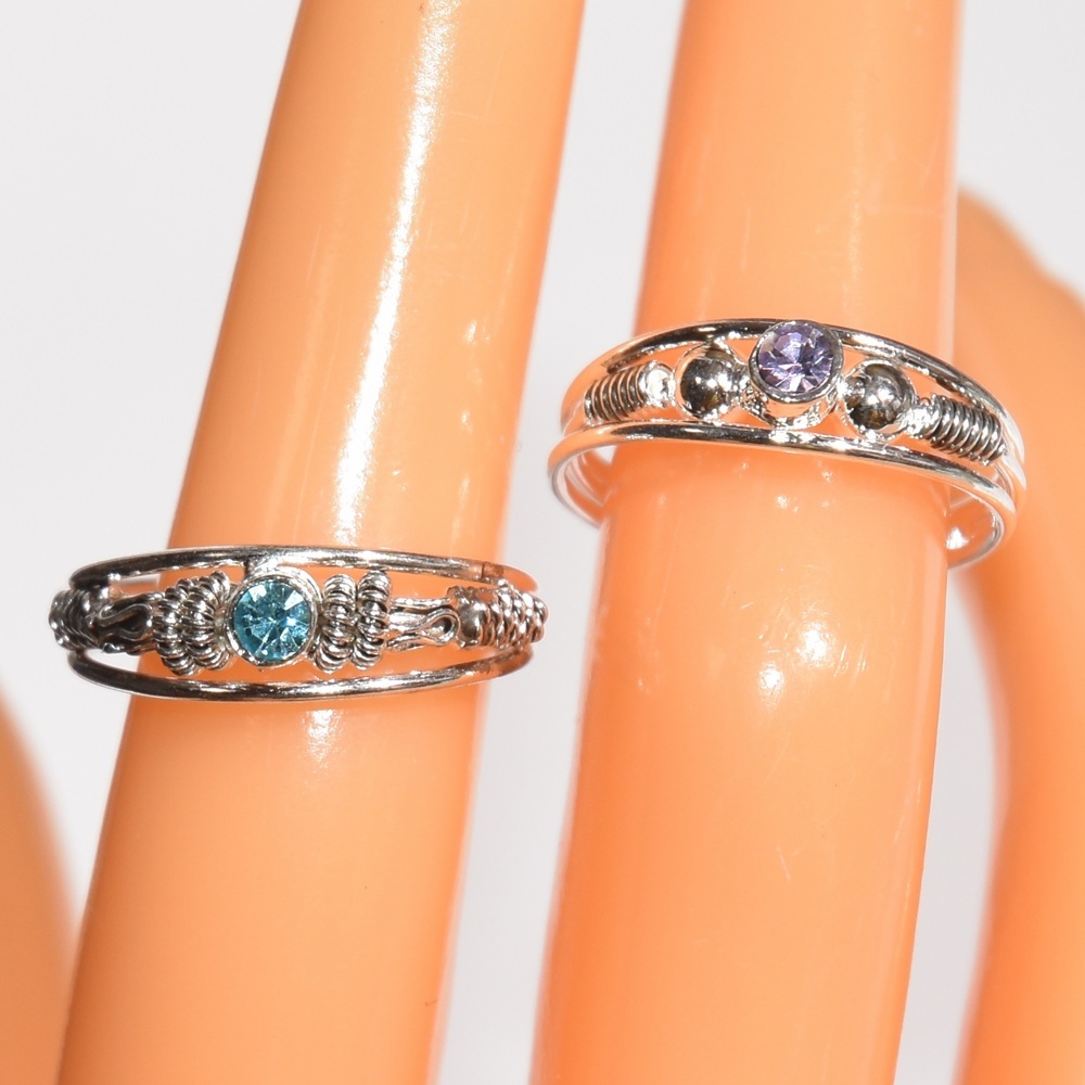 カラーストーンでデザインされた、足用指輪・トゥリング、2個セットです。