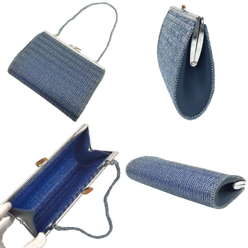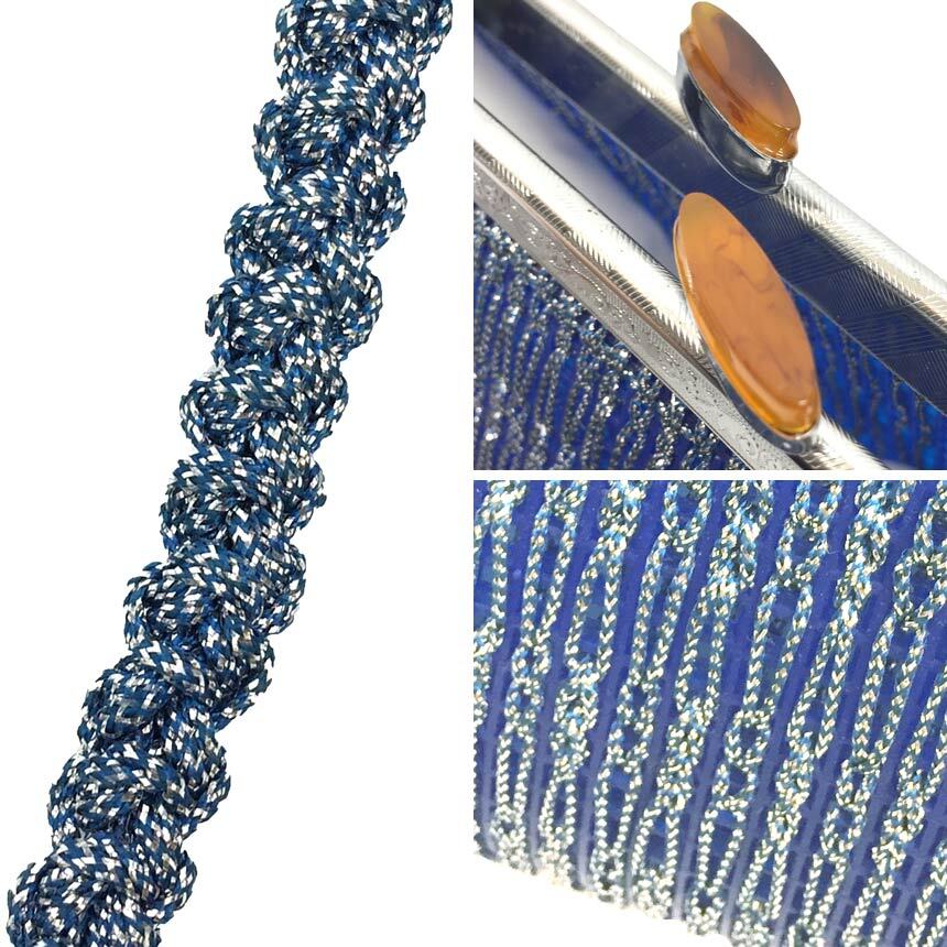 | PRコメント | 珍しいコード編で仕上げた和装バッグのご紹介です。 爽やかな水色に銀糸を込めた美しいコード編みの技術がひかる逸品です。 コード編なので大変軽く涼し気な印象で着物にはもちろん浴衣用バッグとしても最適です♪ クラッチバッグとしてはもちろんのこと、グリップを出してハンドバッグとしても2WAYでお楽しみいただけるデザインです。 和装洋装を問わずお使いいただけるので、お着物にはもちろんのこと、普段のお洋服でもお楽しみいただけます。 仕様:金具開閉 京やO237 |
