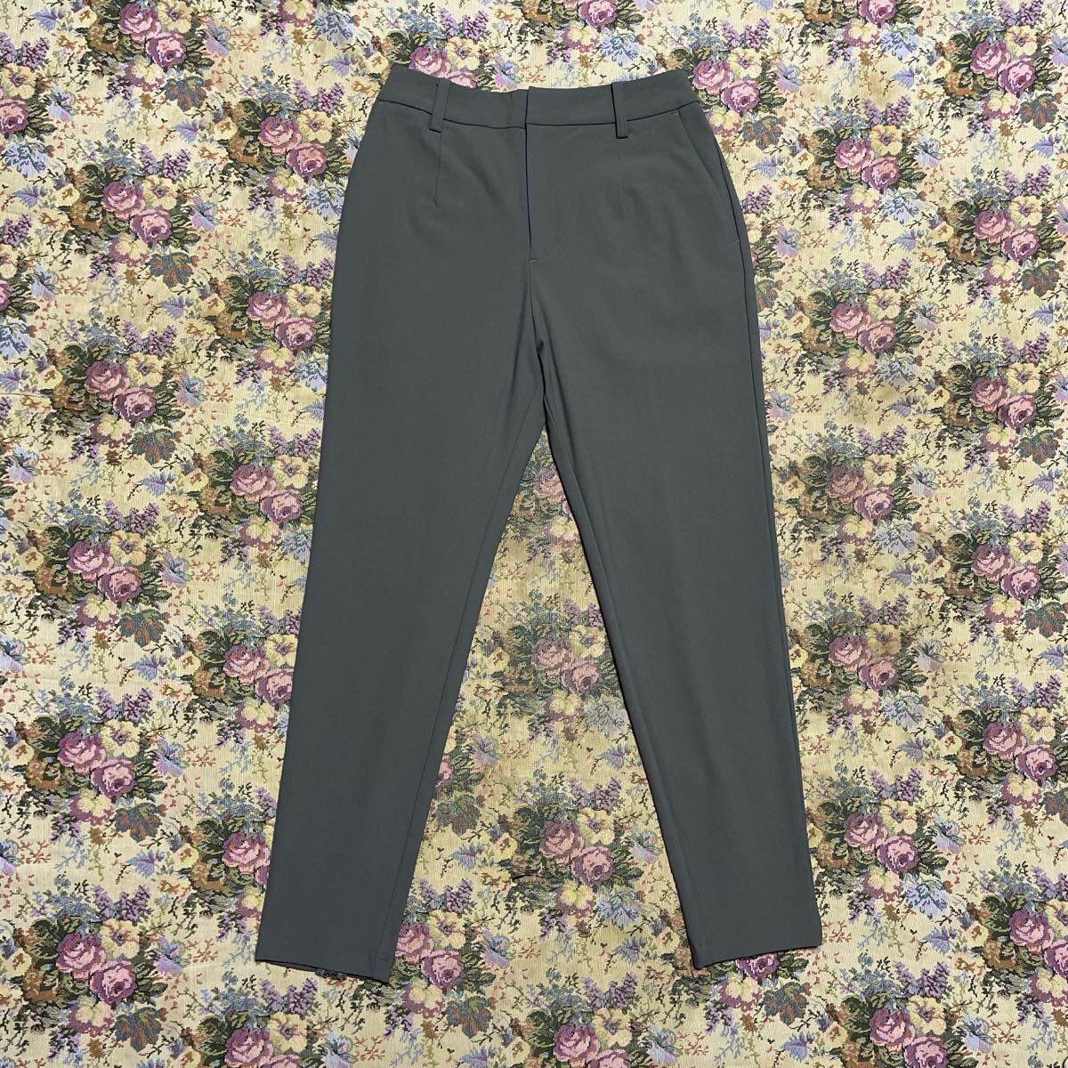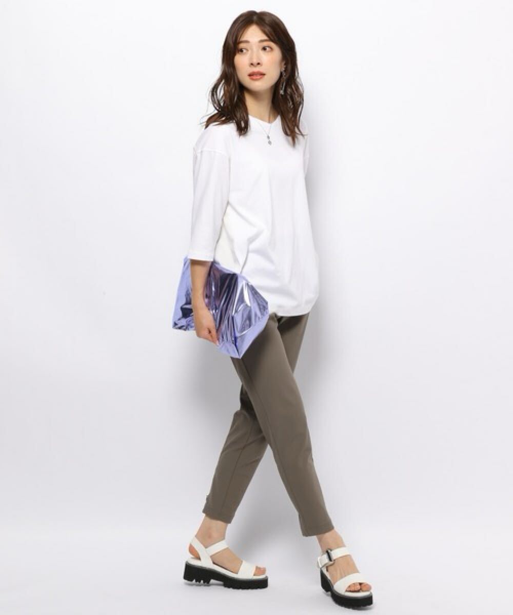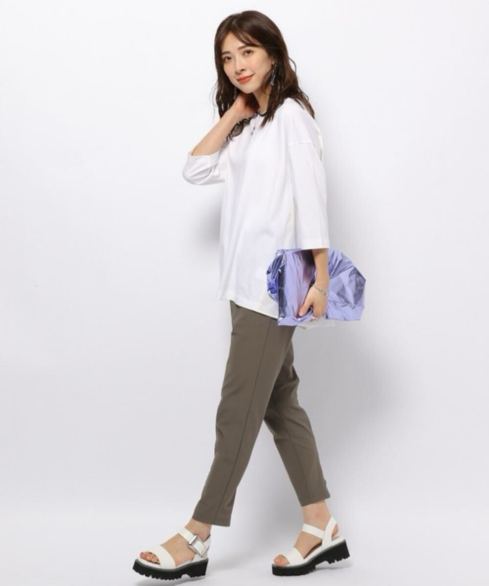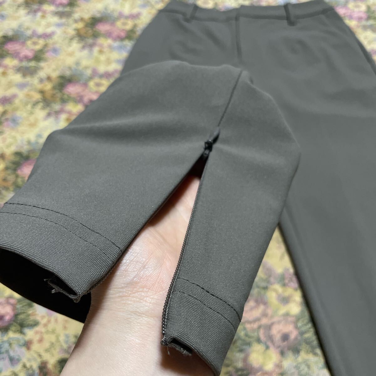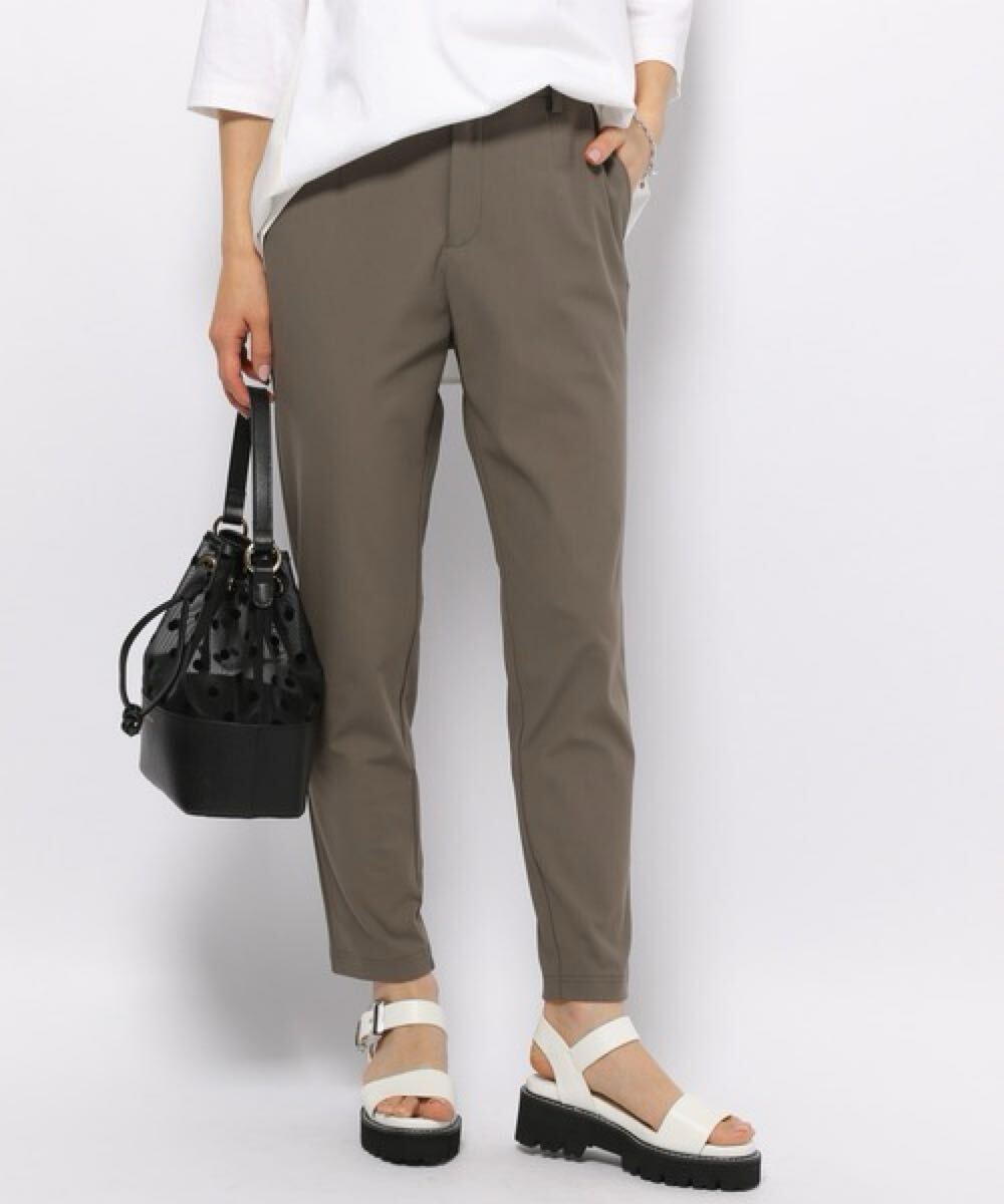 シンプルでトップスを選ばないきれいめな印象のテーパードパンツはお好みで後ろのファスナーを開けてスリットに。