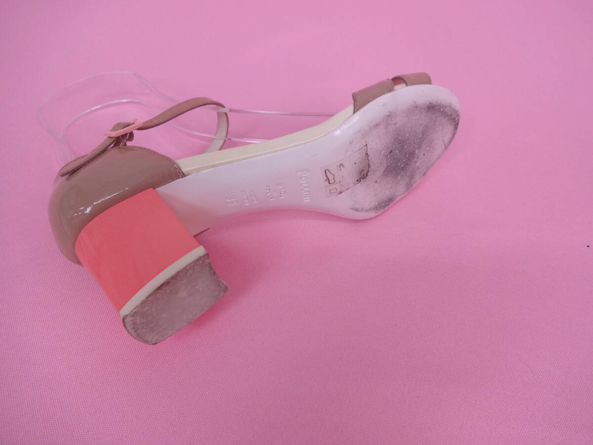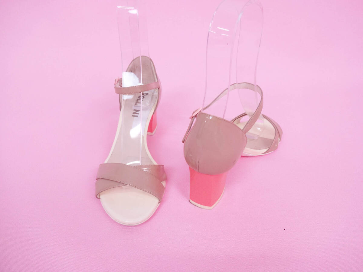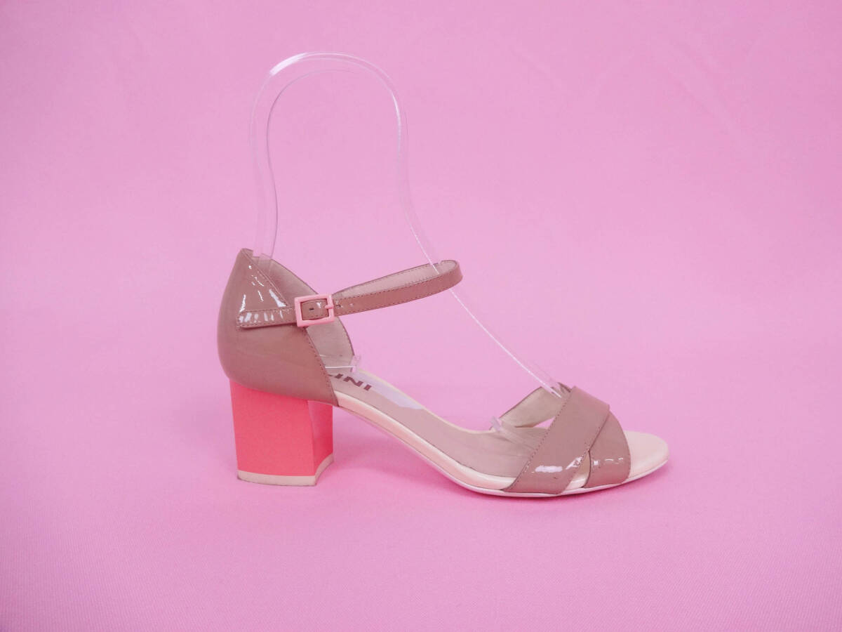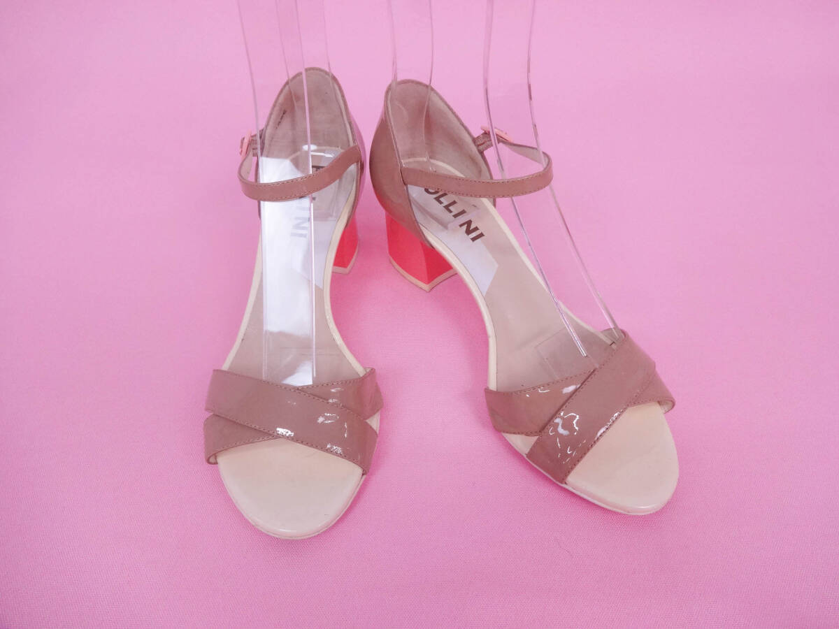 POLINI ポリーニ アンクルストラップサンダル バイカラー パテント ベージュ コーラル 35