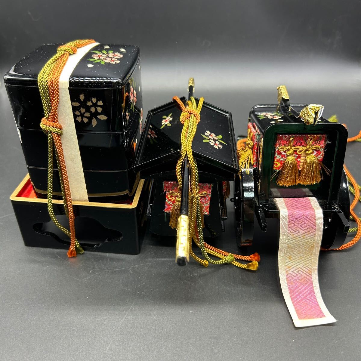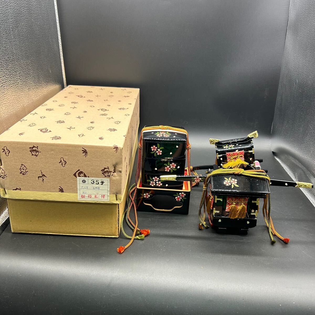 ひな人形 ひな道具 御雛道具 桜蒔絵付 五所車 カゴ タンス ネ12