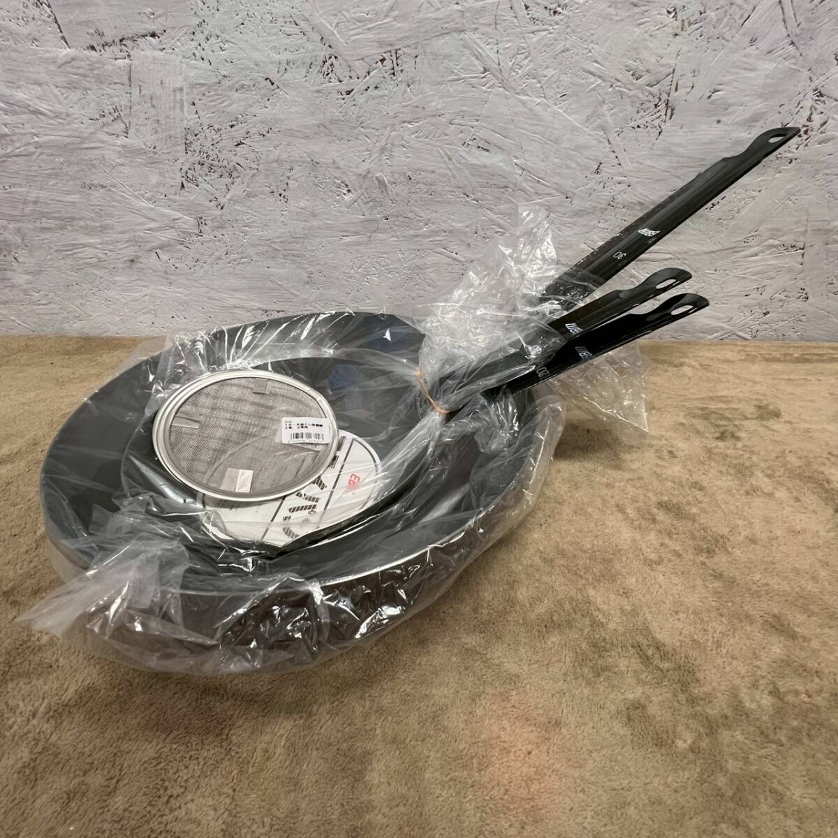 ・【EBM】江部松商事 新品未使用 鉄製フライパン 30φ 20φ 3点セット まとめ売り 油こし2個付き 調理器具 鉄フライパン キッチン用品 Y1401