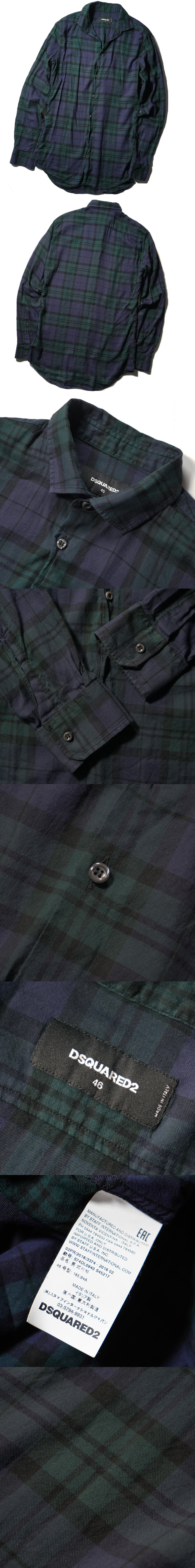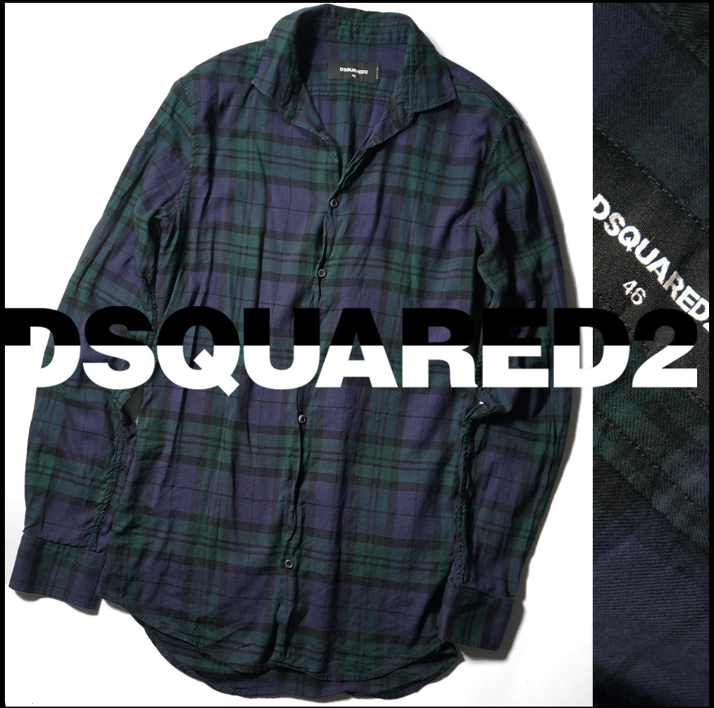 美品【 DSQUARED2 ディースクエアード 】16AW/S74DL0940/イタリア製/通年着用可能なレーヨン混合素材チェックシャツ46/S相当