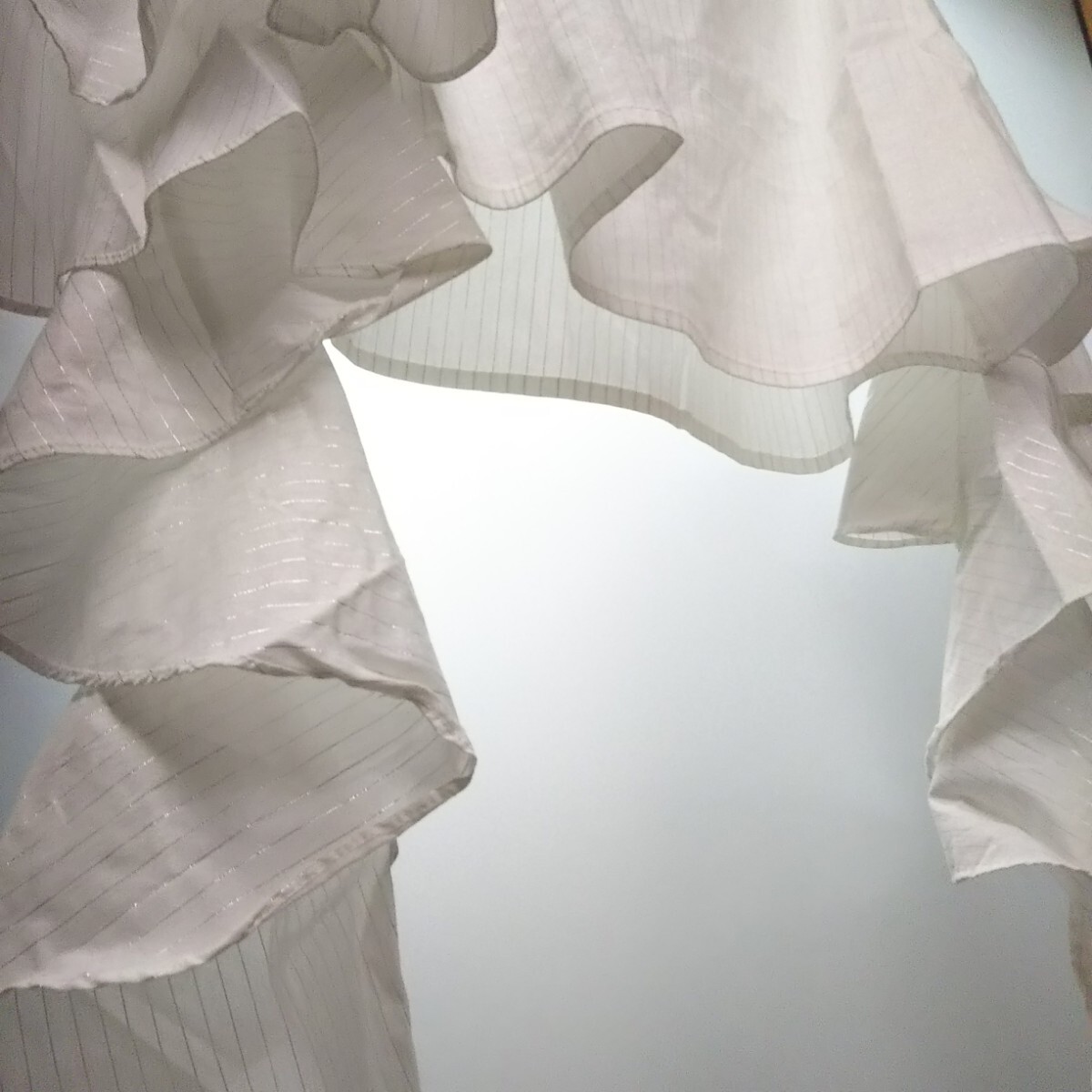 匿/ゆうパケット送込【未使用タグ付き】オフショルダー ヒラヒラ袖 ストライプ スペイン
