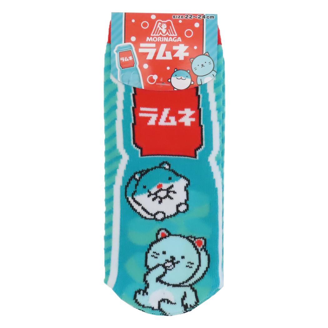 森永ラムネ 女性用靴下 レディースソックス ジャガード しゅうチュー&ラムねこ ビッグシルエット お菓子パッケージ ジェイズプラン