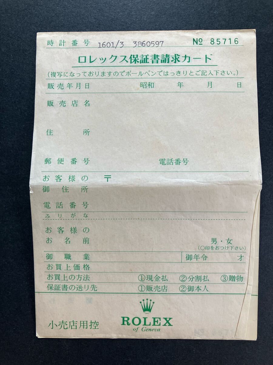 ■ROLEX 1601 保証書請求カード