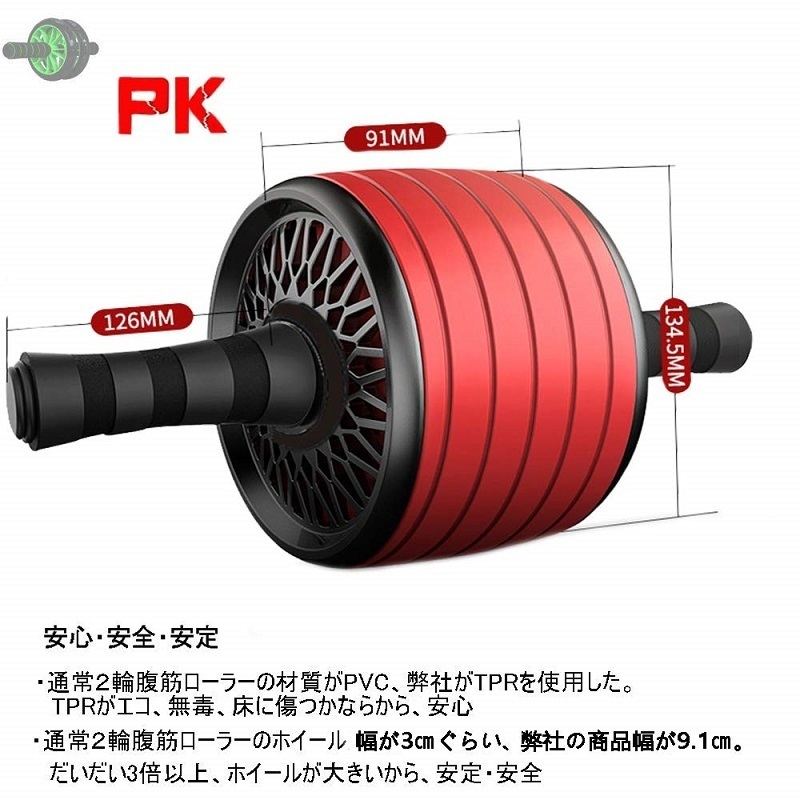 ● 最新デザイン【超大ホイール 】通常2輪腹筋ローラーの厚さが3cmぐらいですが、 HACFITローラーが9.1cmです。厚さが約3倍以上なので、安定感が抜群です。腹筋はもちろんのこと、基礎代謝もUP!上級者だけでは なく、初心者に使用しても、安全・安心です。超大アブローラー・腹筋マシーン、短期間で腹筋、上半身を鍛えるための最強アイテ ムです。最短最速で腹筋をバッキバッキに割りたい、くびれを出したい、そんな方にぴったりの腹筋ローラーです。 【収納便利 】ハンドルを差し込むだけの簡単組み立て式の腹筋ローラーです。簡単に収納でき、省空間、コンパクト、持ち運びに優 れて、収納便利です。人間工学に基づいたハンドルで快適な運動でき、簡単に外れません。トレーニング上級者だけでなく女性の方 や初心者にもおすすめです。膝が痛くならないように厚めのアブローラーEVAマットも付属されていて、楽に筋トレができます。効率 良くトレーニングしたい方や初心者の方をアシストする、おすすめランキング上位の人気筋トレ器具です。 【超静音】ホイールはエコ無毒のTPR素材を採用し、スムーズな回転で夜間でも他人に迷惑をかけません。価格の安い筋トレローラー 器具なのに、超静音で自宅でジム並みの高い筋トレ効果があるスーパーアイテムです。 上半身を効率良く鍛え上げる!腕、肩、胸、 腹筋、背筋、腰、上腕三頭筋、三角筋、脚の付け根を同時に使うエクササイズです。正しい訓練方法は効率がよく、自らに合う鍛え 方を探しましょう。。膝を傷めないよう、トレーニングマットやシート類をお敷き下さい。 【滑り止め】人間工学に基づいたハンドグリップは高密度リップストップ発泡スポンジ+ABS素材を使用するため、グリップを握って 効果的に滑り止められています。普通のローラーハンドルと比べ、親指への負担軽減にも効果あります。汗を吸って、防臭、耐磨耗 性を持つ。組み立て後、すぐに使えることができ、超便利です。