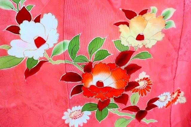 アンティーク 訪問着 友禅染 身丈148.5cm サーモンピンク お洒落 レトロ kimono 仕立て上がり 正絹 着物フィ 19062 |