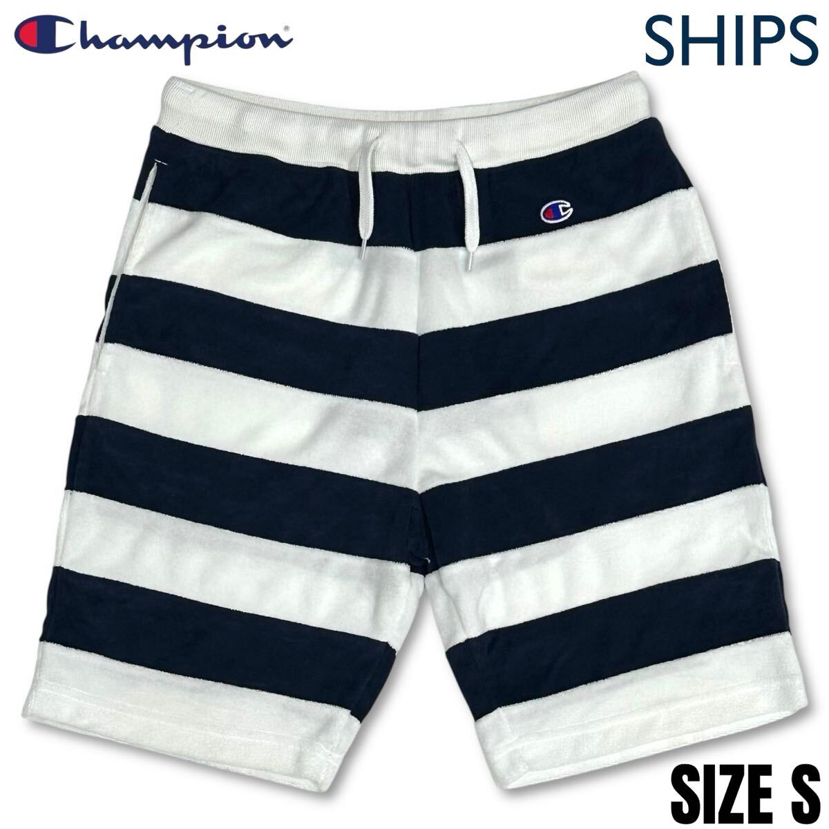 国内正規品■ Champion (チャンピオン) ボーダー 柄 パイル地 ハーフパンツ 白紺 (ホワイト/ネイビー) S アメカジ 古着 ヴィンテージ