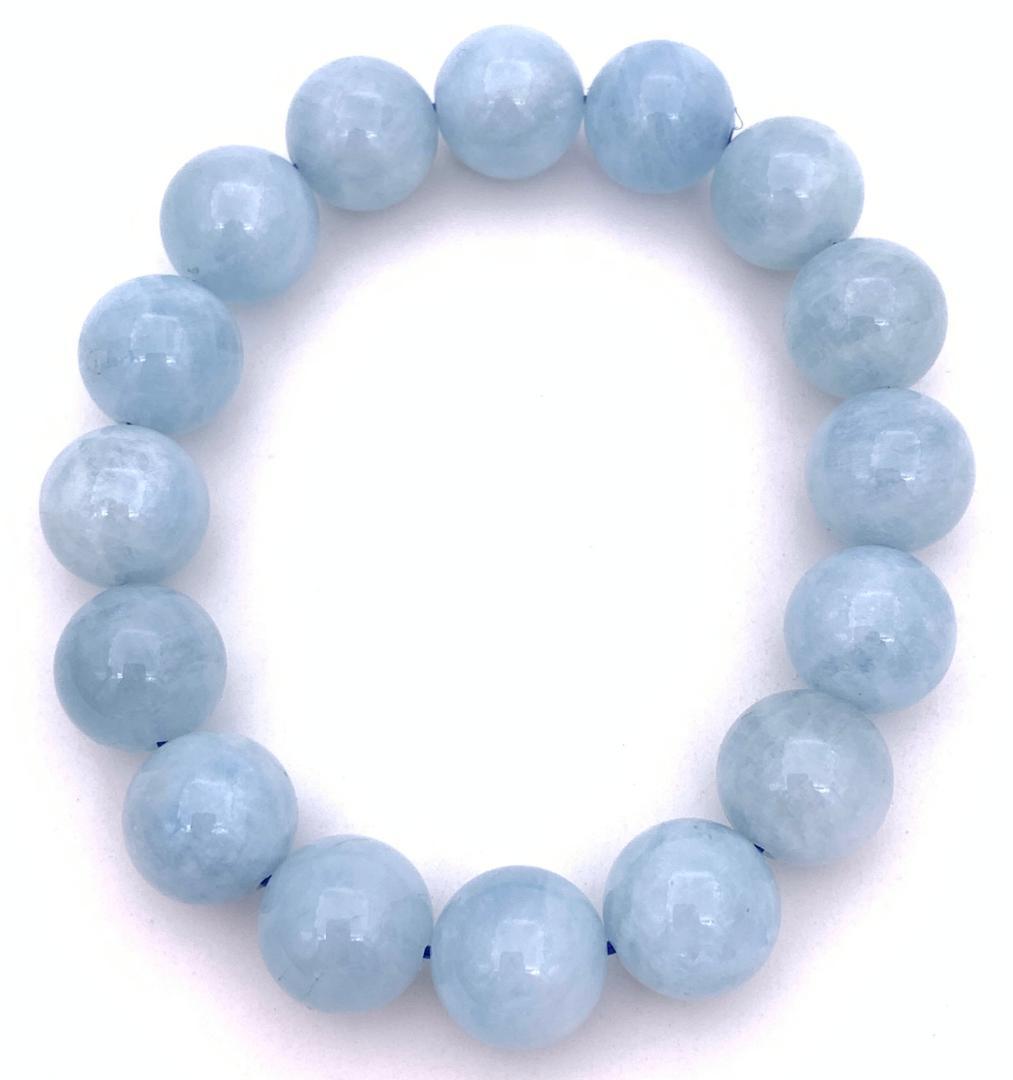 天然石アクアマリン(藍玉)AA12mm玉のブレスレット