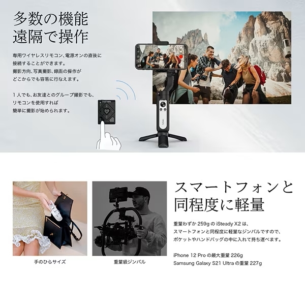 | ◆新品未開封 Hohem(ホーヘム)スマホ用ジンバル 3軸スタビライザー iSteady X2 Black [ワイヤレスリモコン付属 大容量バッテリー] ラスト | |