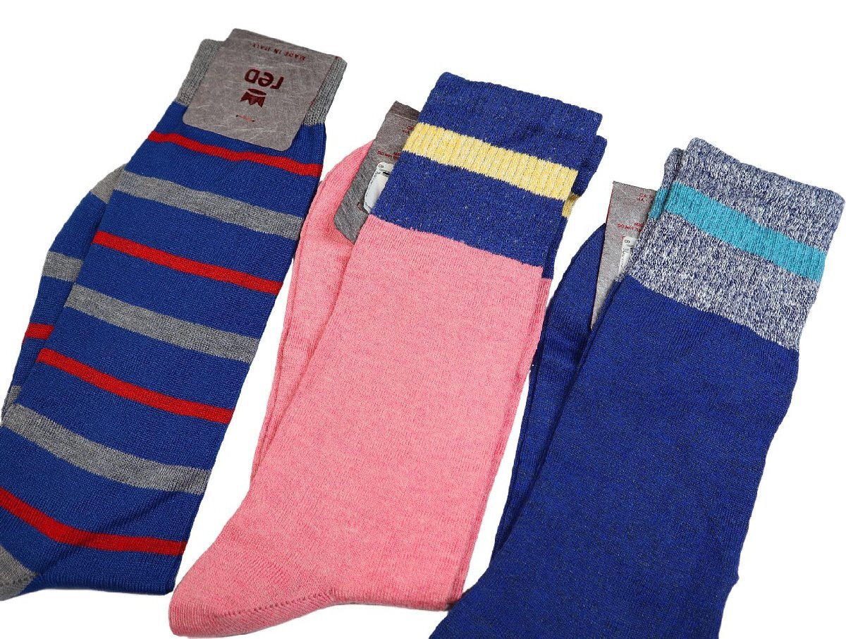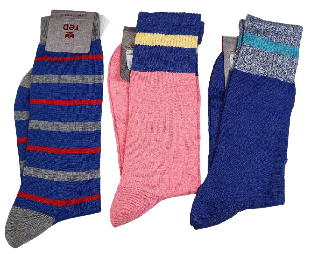 夏の洒脱でラグジュアリーなカジュアル靴下!【 red / レッド (伊 】ブルー系とピンクのストレッチ靴下3足セット / フリーサイズ 25~30cm