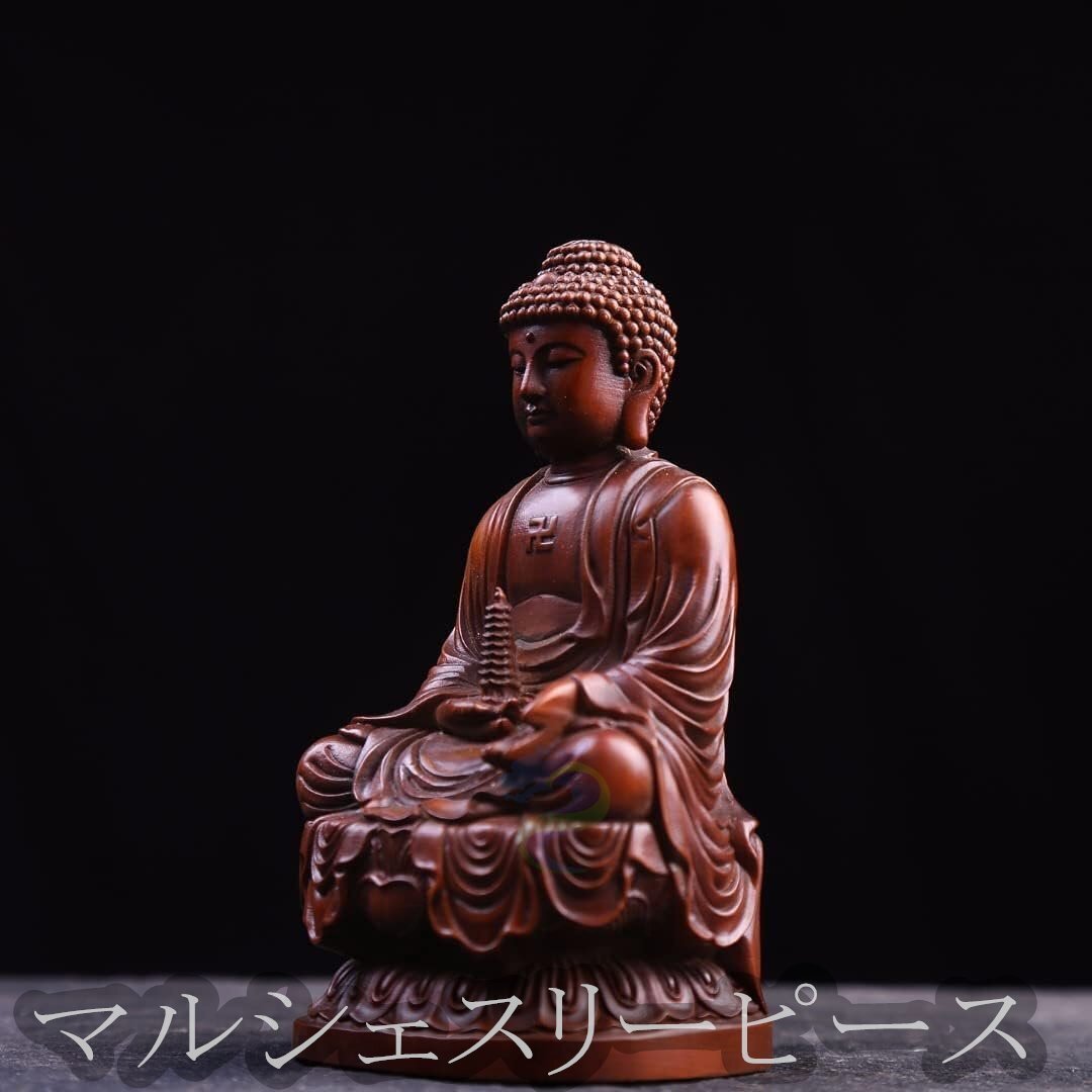 薬師如来 木彫り 仏像 如来像 柘植の木 古美色 置物 無病息災 病気平癒 守護 厄除け 開運