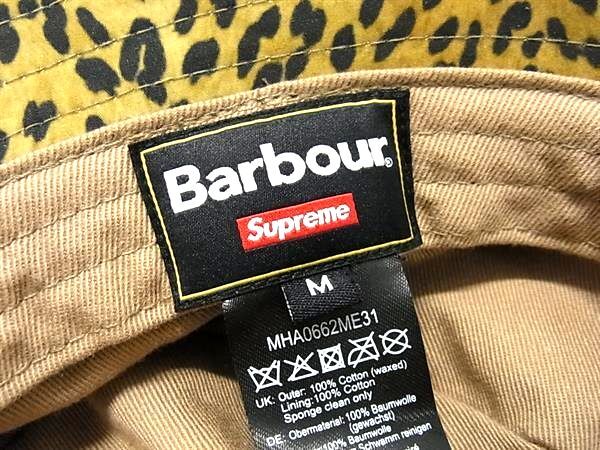 ■美品■ Supreme シュプリーム×Barbour バブアー コットン100% レオパード バケットハット 帽子 表記サイズ M ベージュ系 FJ7557