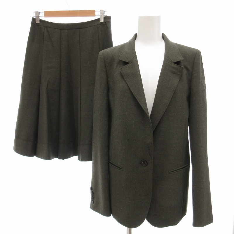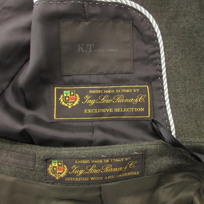 ケーティー キヨコ タカセ K.T KIYOKO TAKASE ロロピアーナ地 スカートスーツ セットアップ ジャケット フレア カシミヤ混 9 深緑
