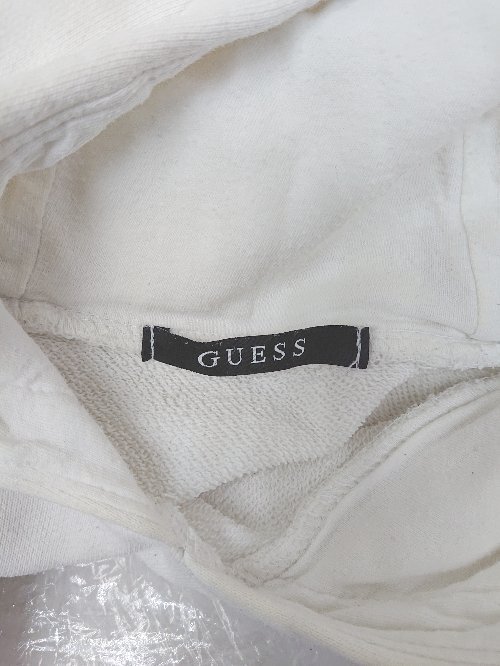 ◇ GUESS ゲス カジュアル ロゴ 刺繍 長袖 プルオーバー パーカー サイズM アイボリー メンズ P