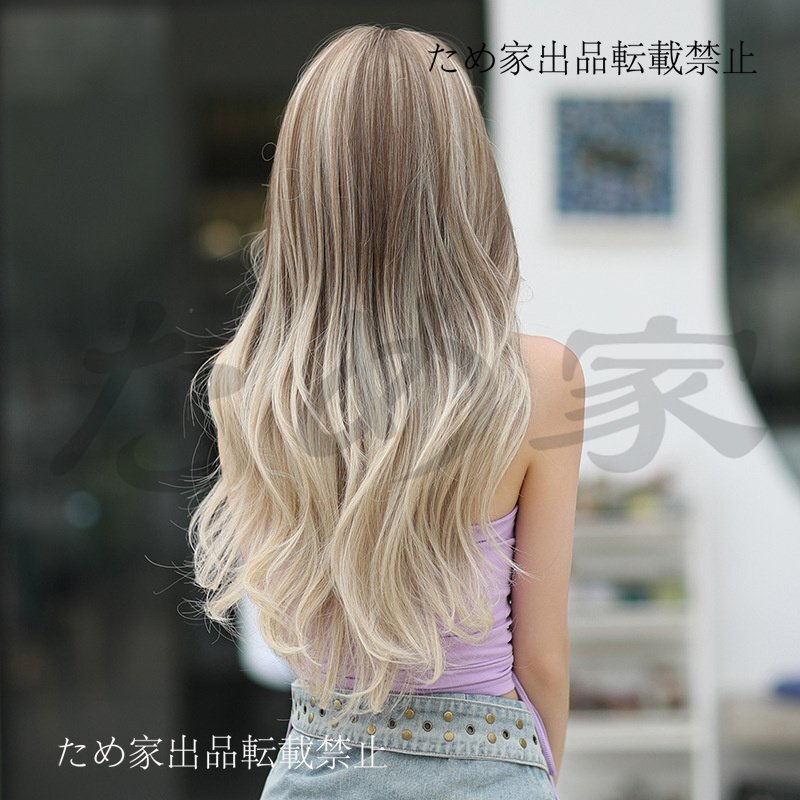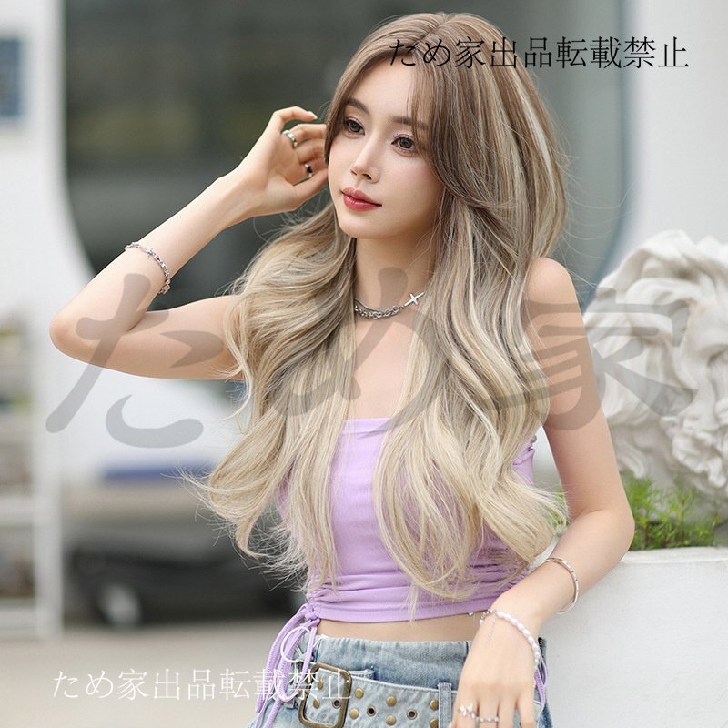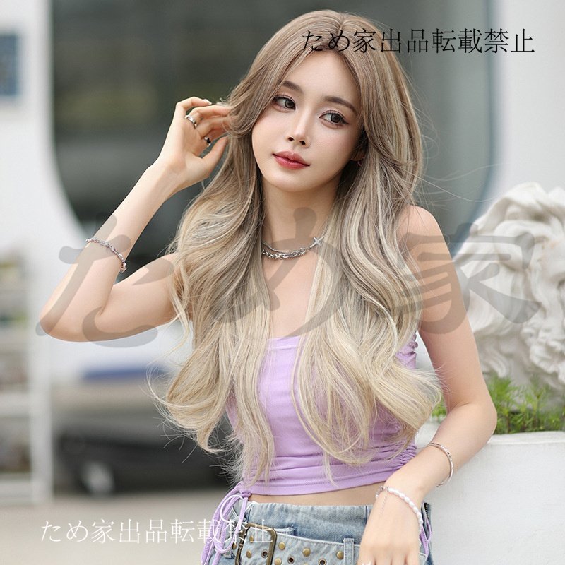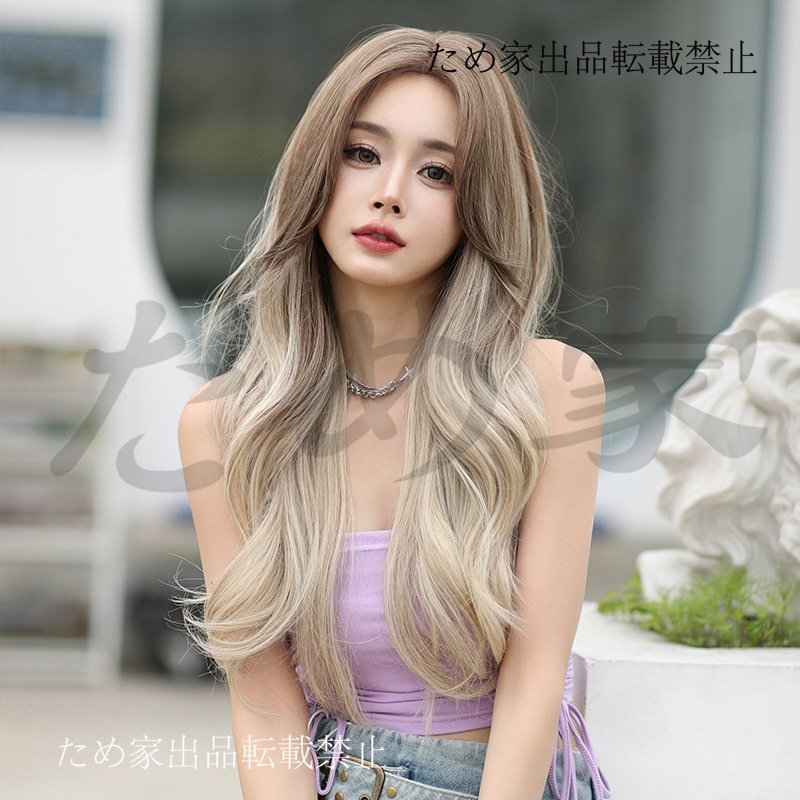 新品人毛 センター分け レディース ロングカール 大きめウェーブ グラデーションカラーウィッグ つむじ部分手植え 自然に見えますフルウィ