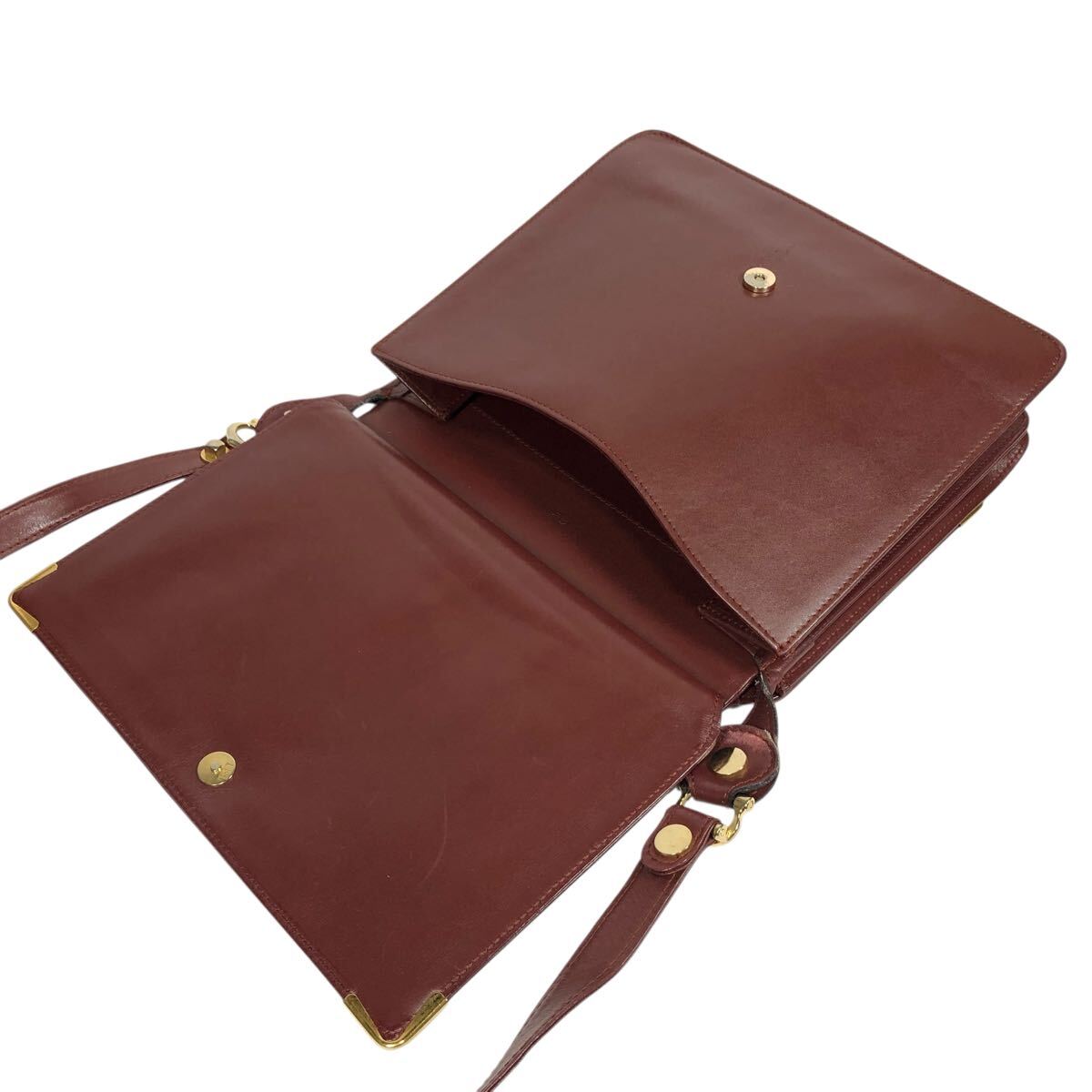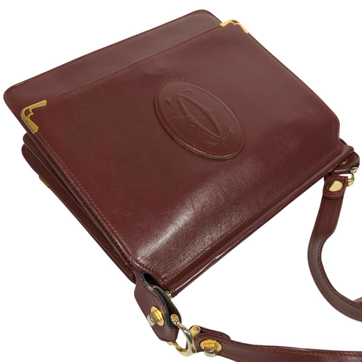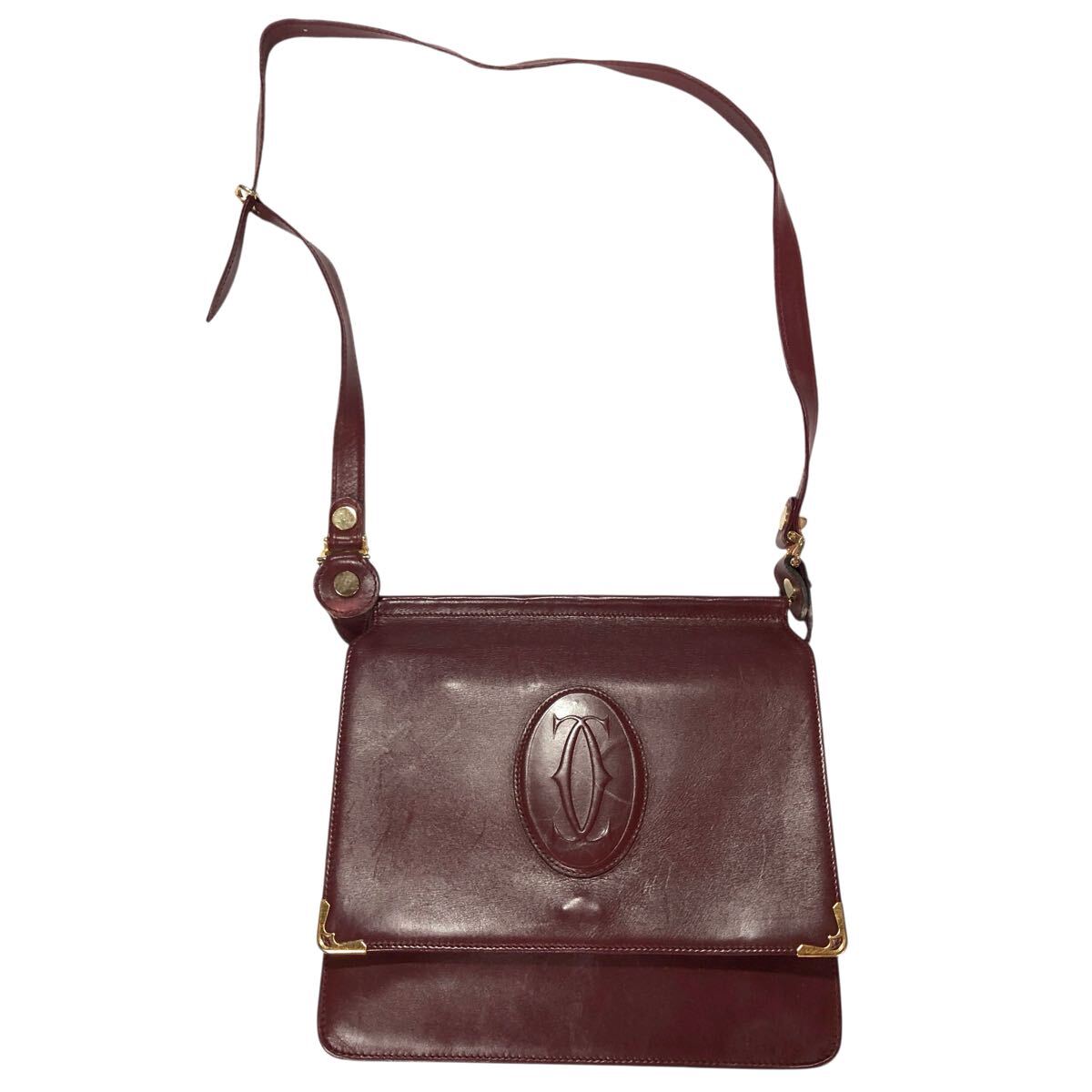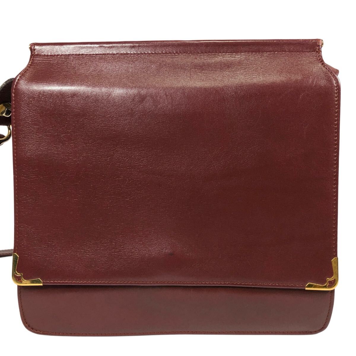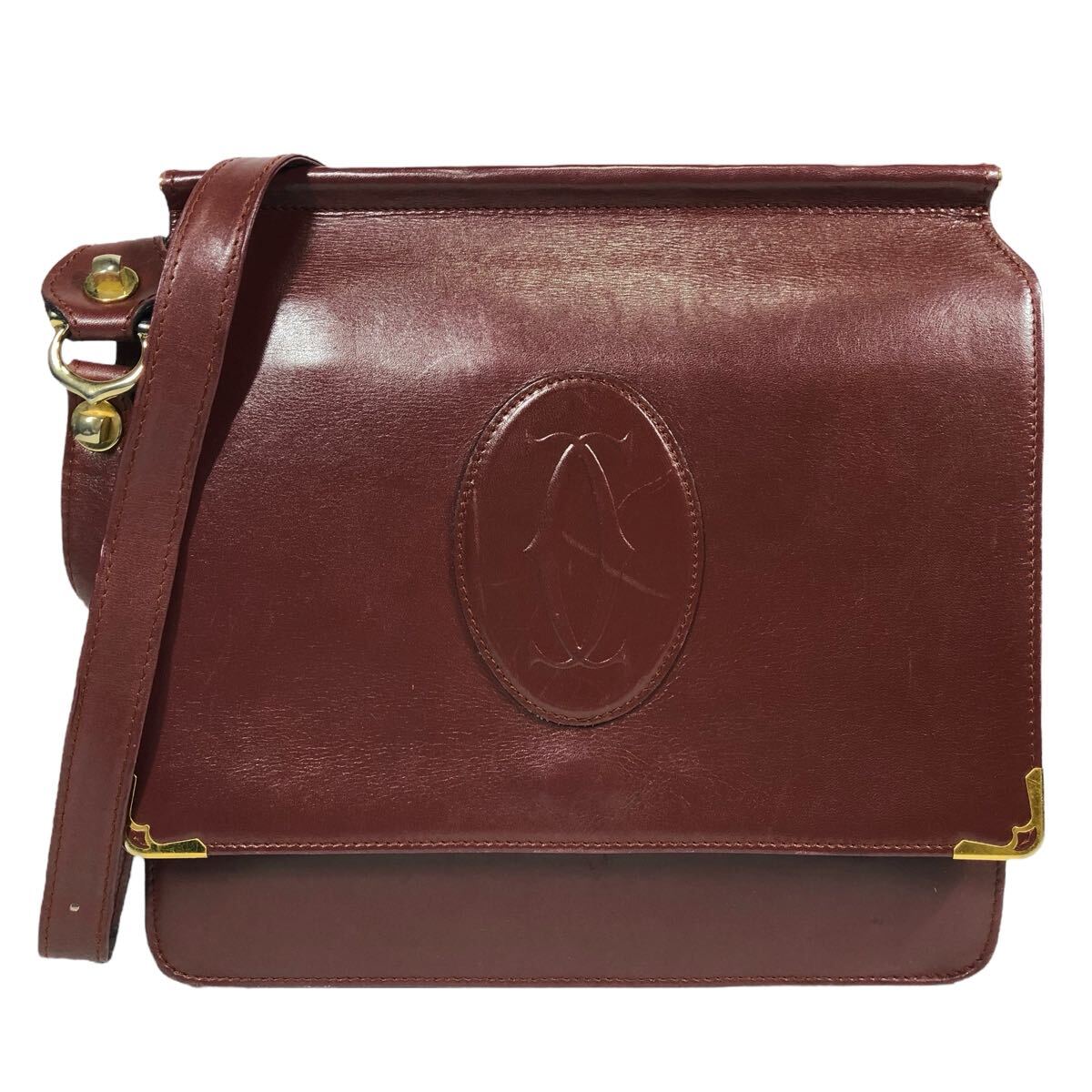 【カルティエ】本物 Cartier マストライン ショルダーバッグ 斜め掛け ボルドー色系 本革 レザー メンズ レディース
