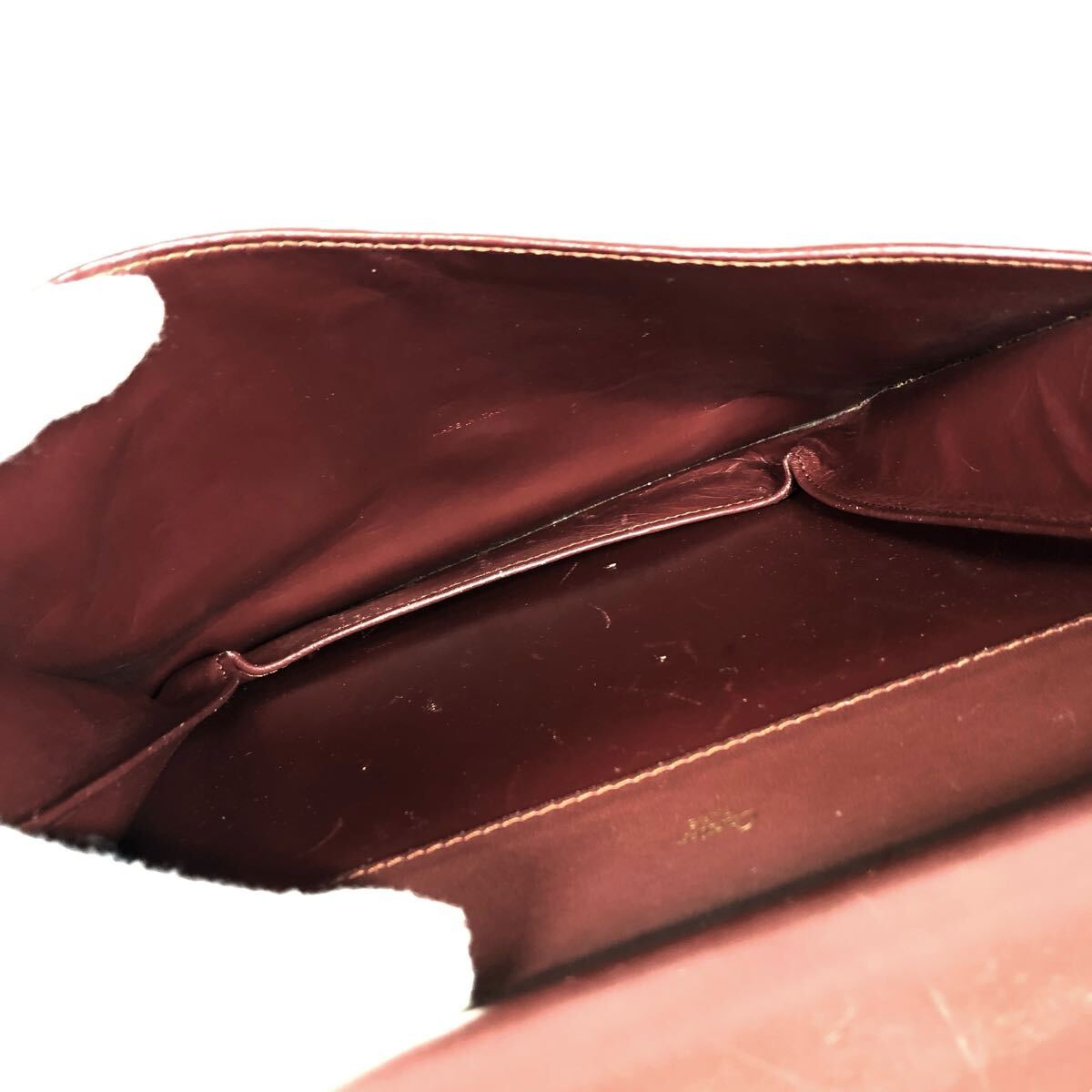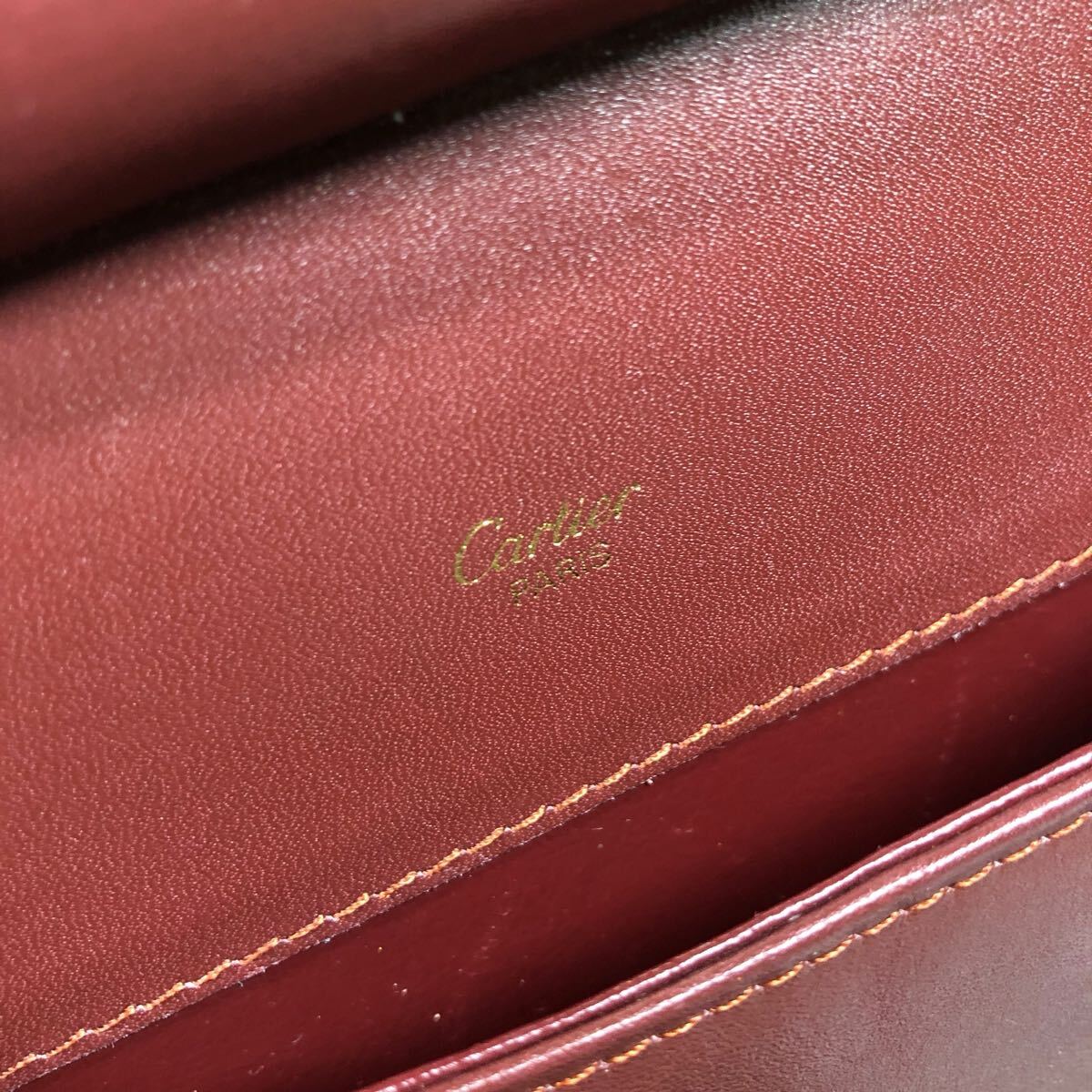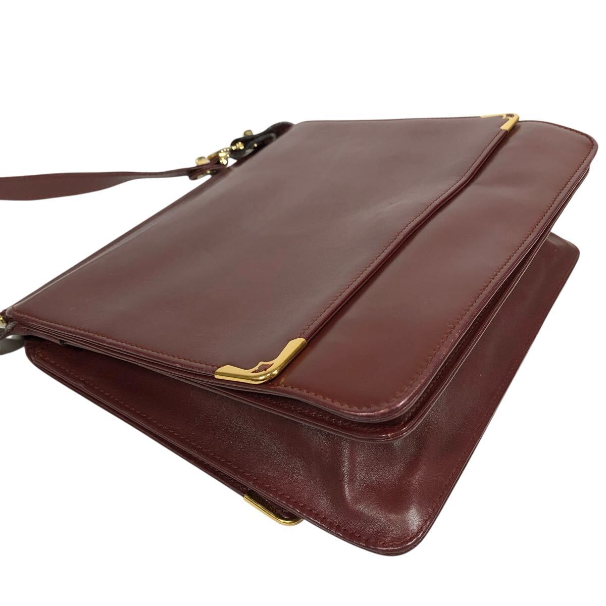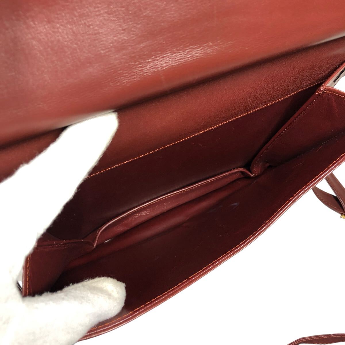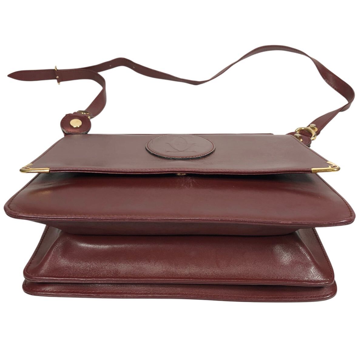 【カルティエ】本物 Cartier マストライン ショルダーバッグ 斜め掛け ボルドー色系 本革 レザー メンズ レディース