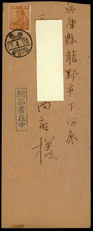 A63 エンタイヤ 8円「炭鉱夫」貼 姫路/27.4.24