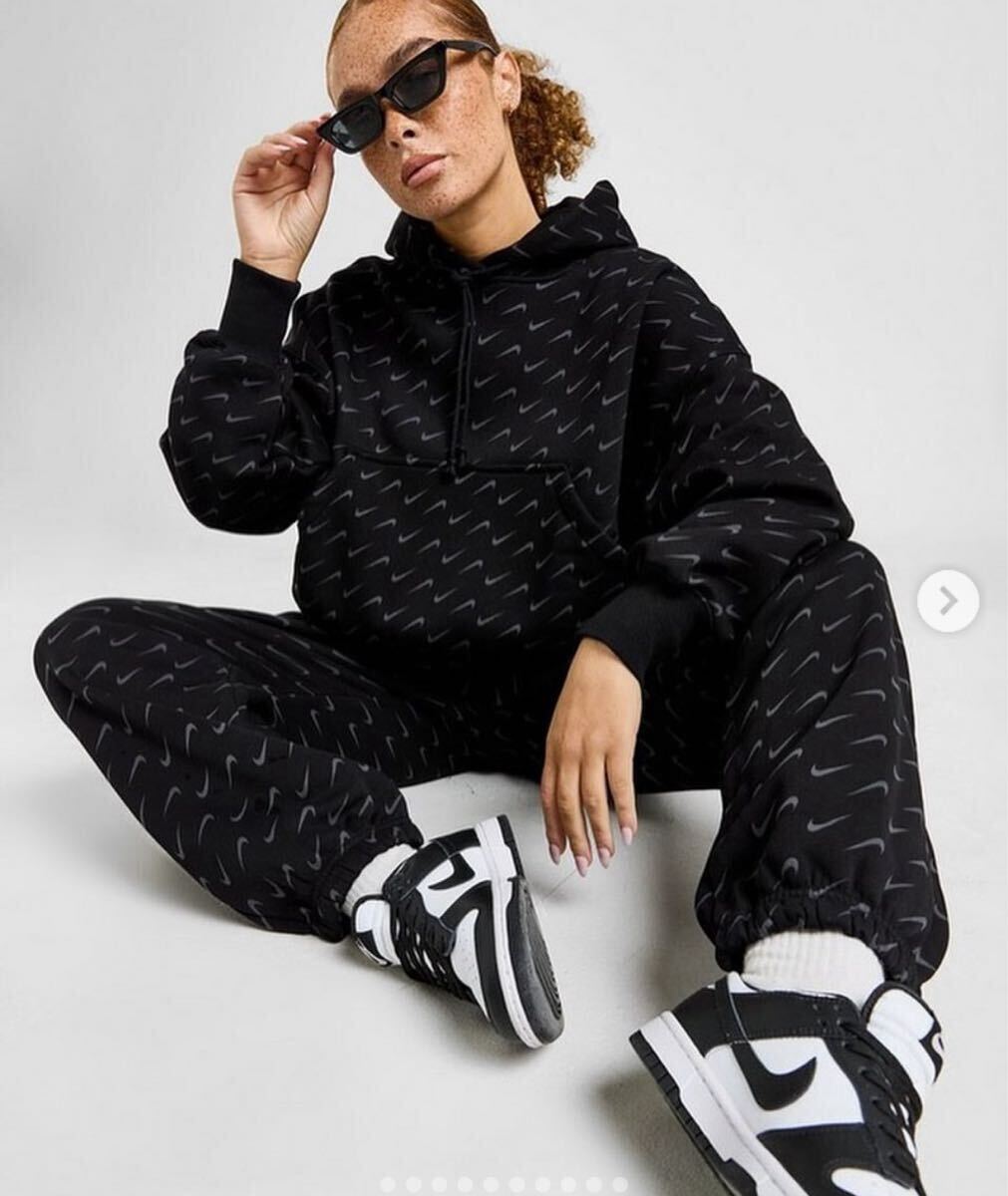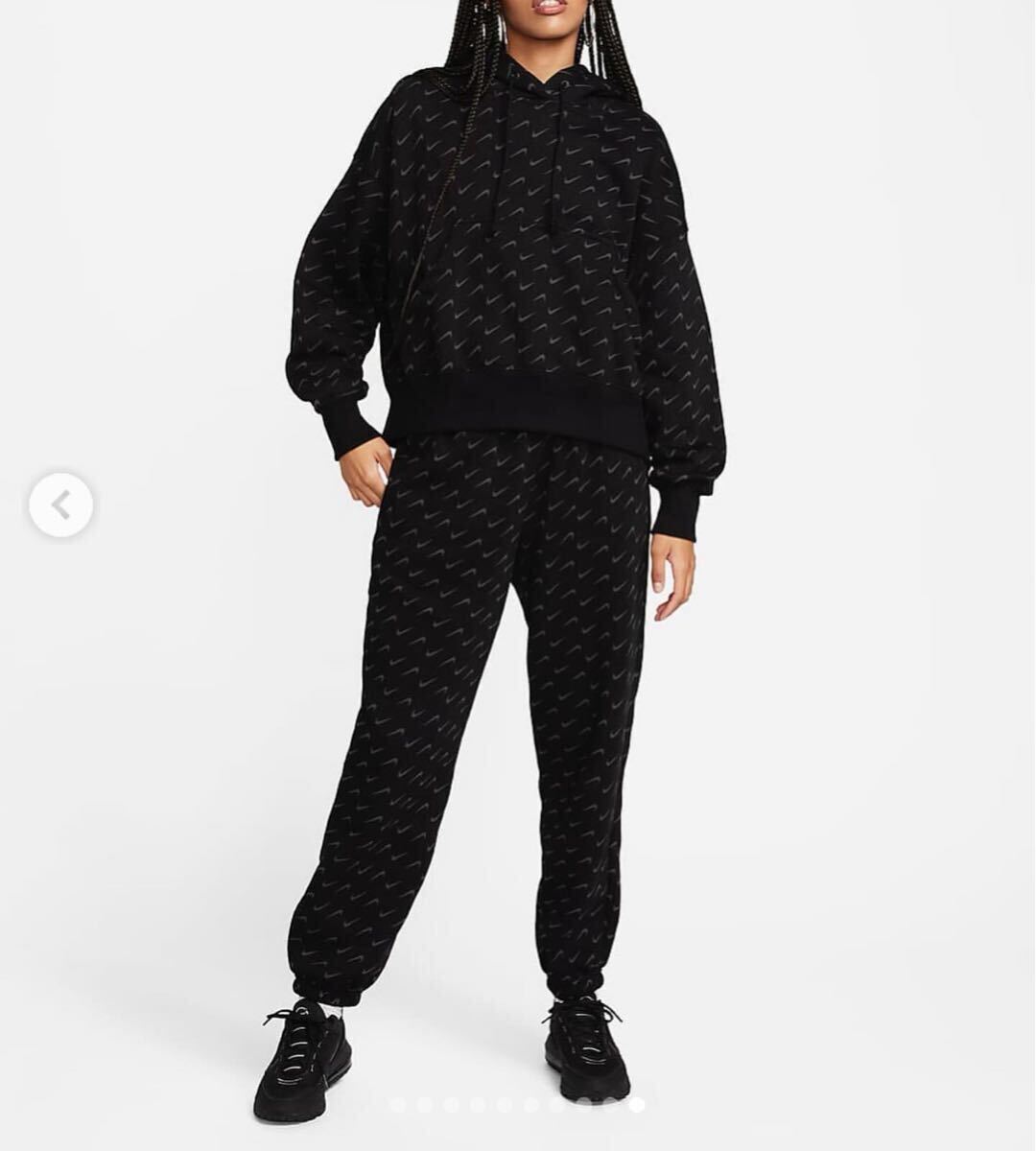 スウッシュ総柄のレディス スウェットジョガーパンツ。